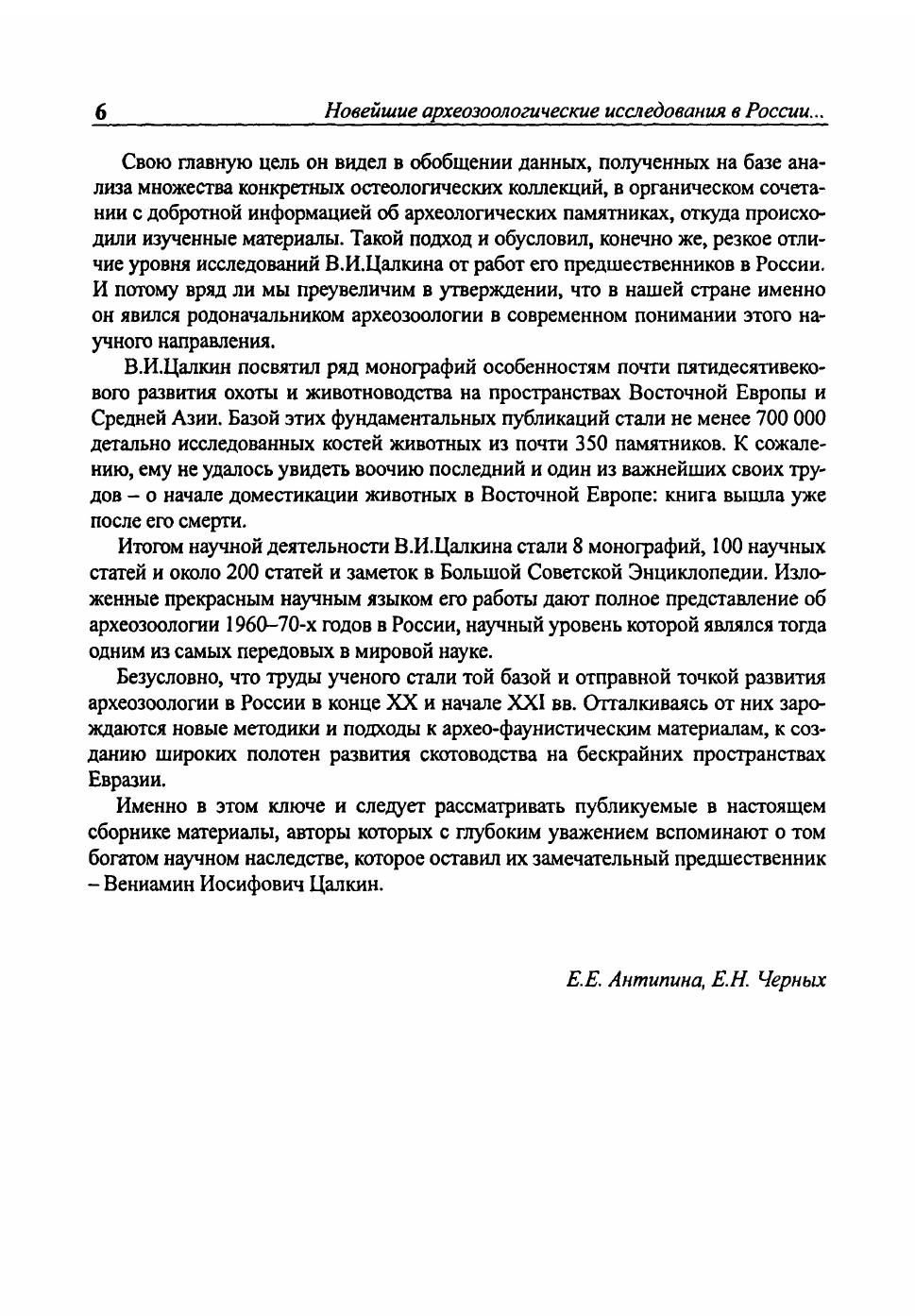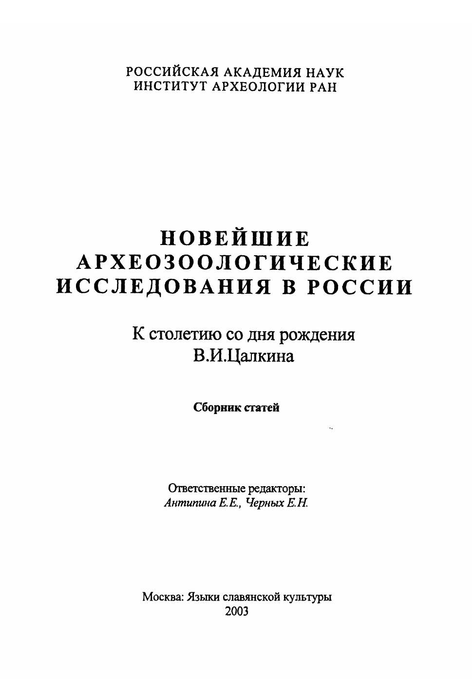 Новейшие археозоологические исследования в России: К 100-летию со дня рождения В.И. Цалкина