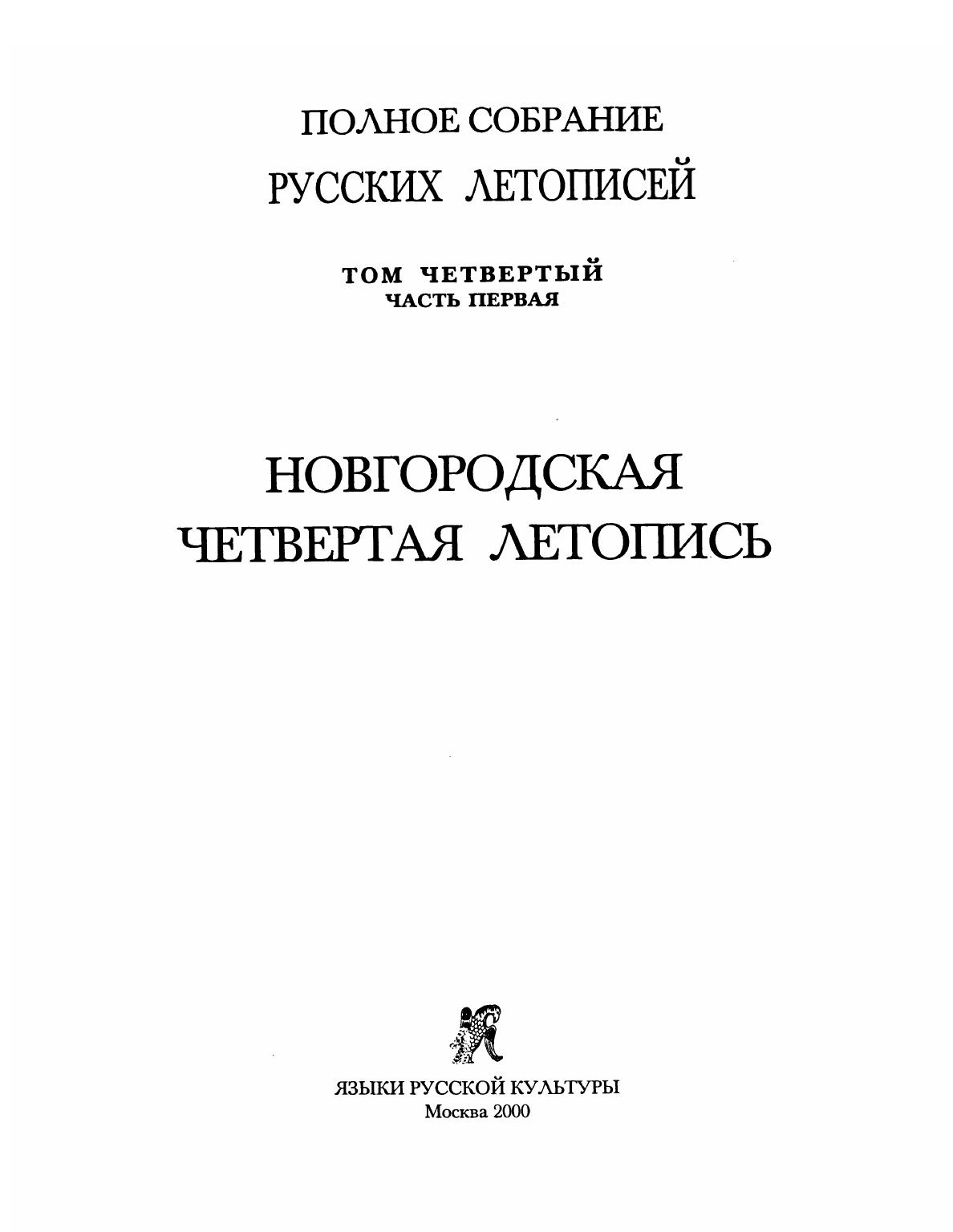 Новгородская четвертая летопись (Полное собрание русских летописей. Т. IV. Ч. 1)