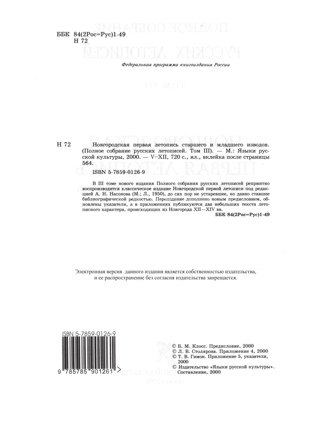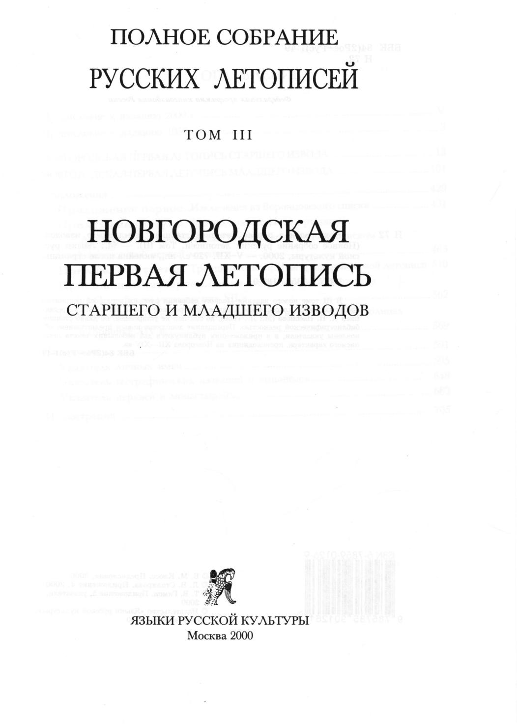 В III томе нового издания Полного собрания русских летописей репринтно воспроизводится классическое издание Новгородской первой летописи под редакцией А.Н. Насонова (М., Л., 1950), до сих пор не устаревшее, но давно ставшее библиографической редкостью. Переиздание дополнено новым предисловием, обновлены указатели, а в приложениях публикуются два небольших текста летописного характера, происходящих из Новгорода XII—XIV вв.