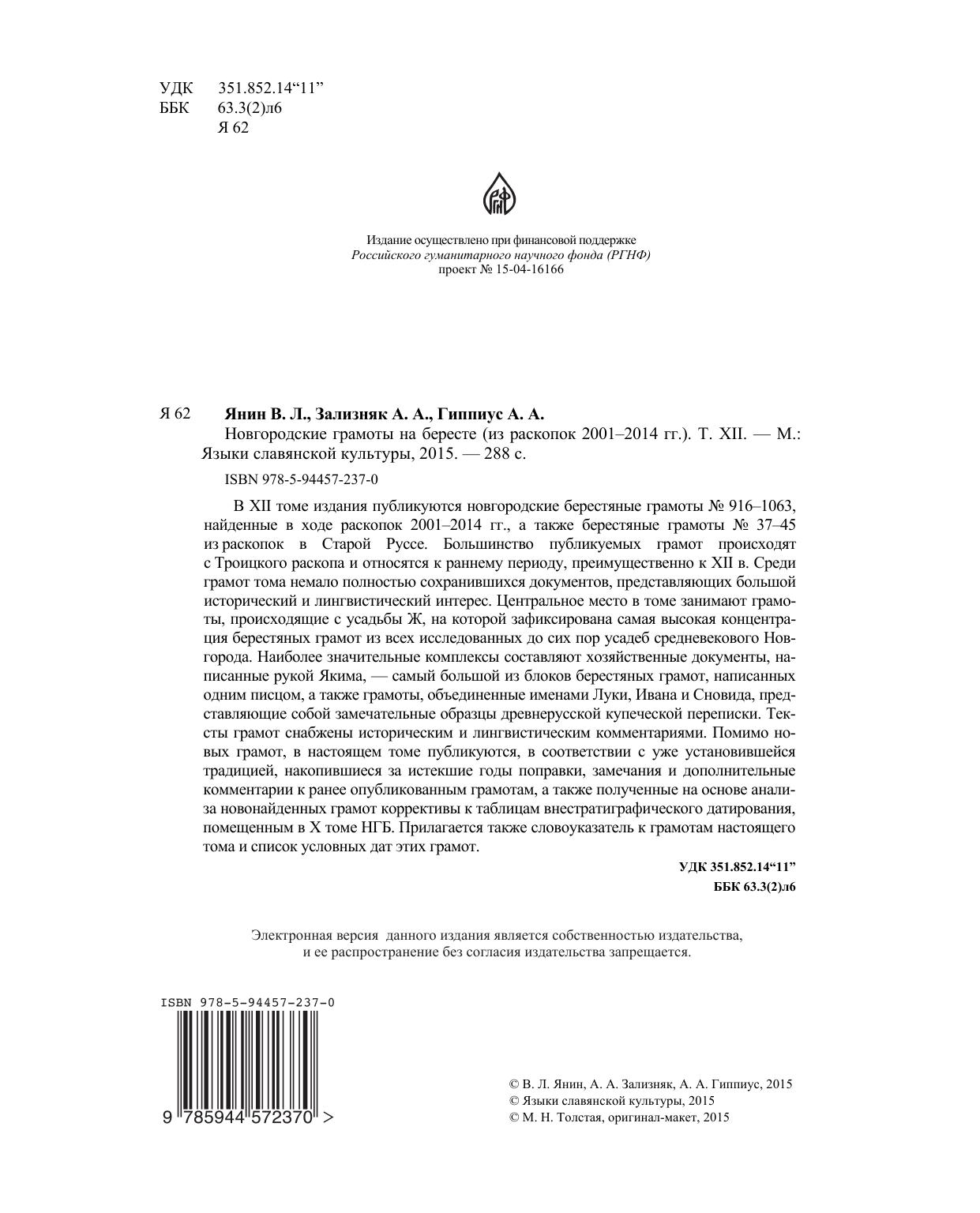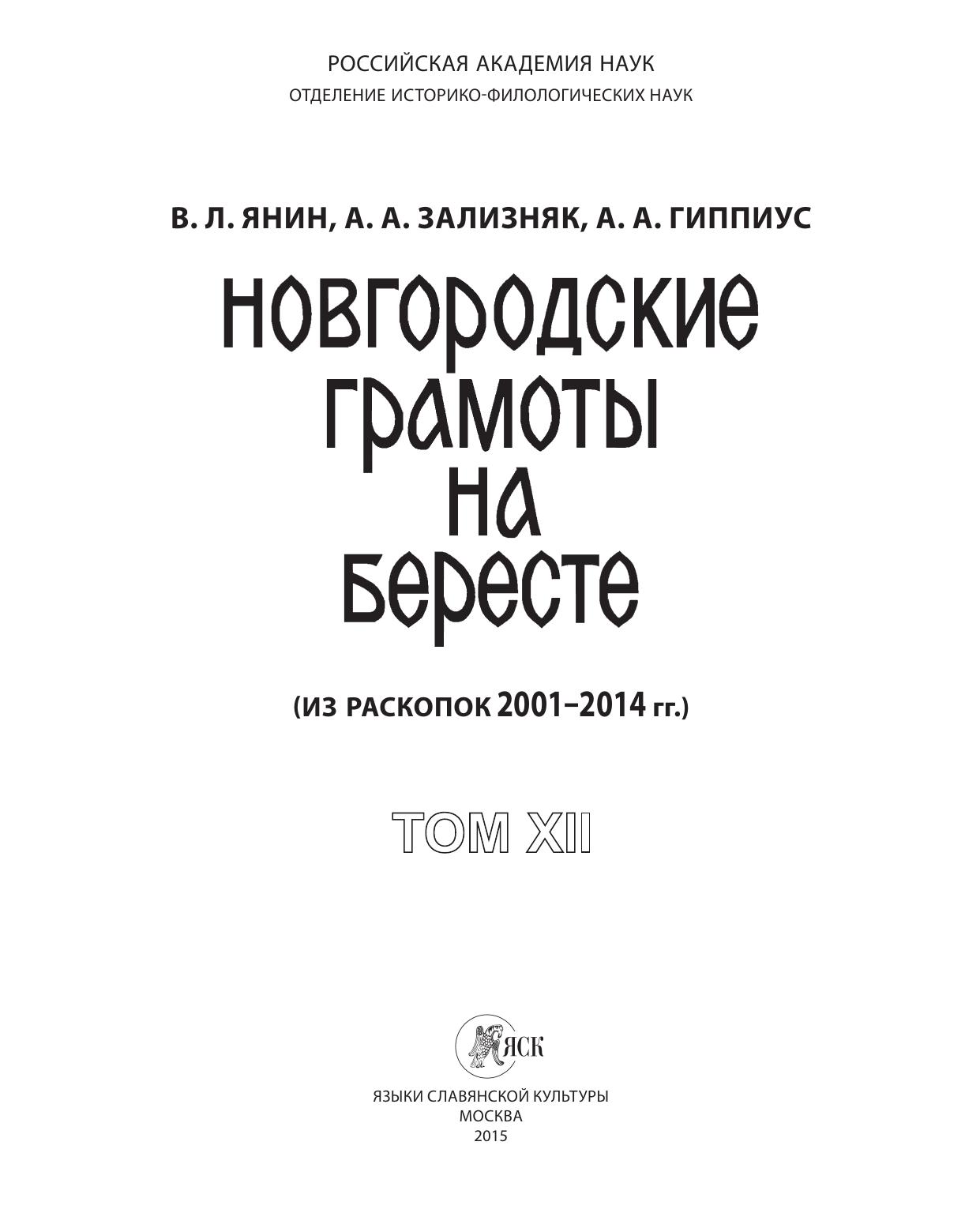 Авторы: Янин В. Л., Зализняк А. А., Гиппиус, А. А.