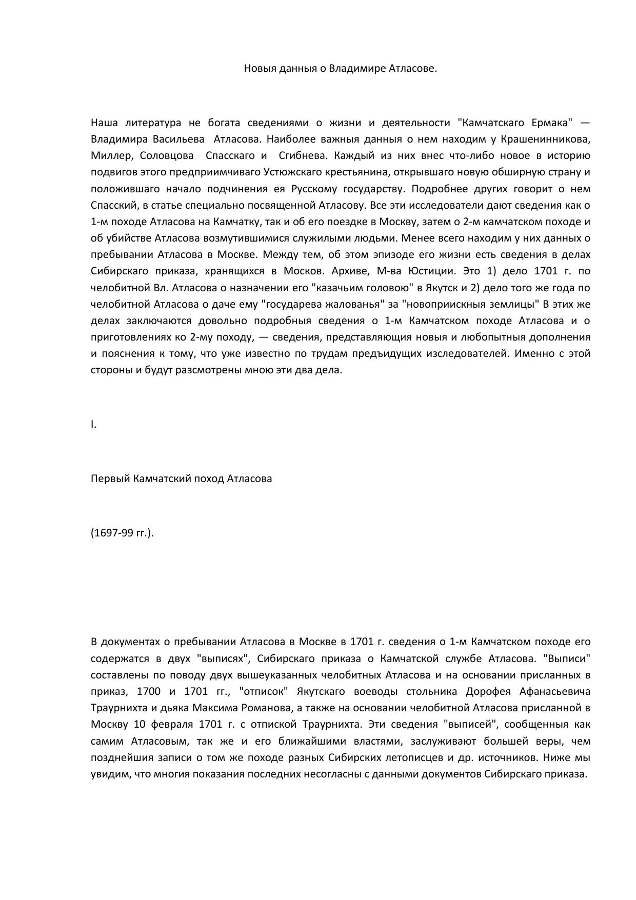 Новые данные о Вл. Атласове