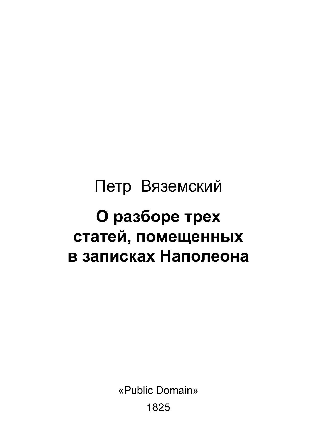 О разборе трех статей, помещенных в записках Наполеона