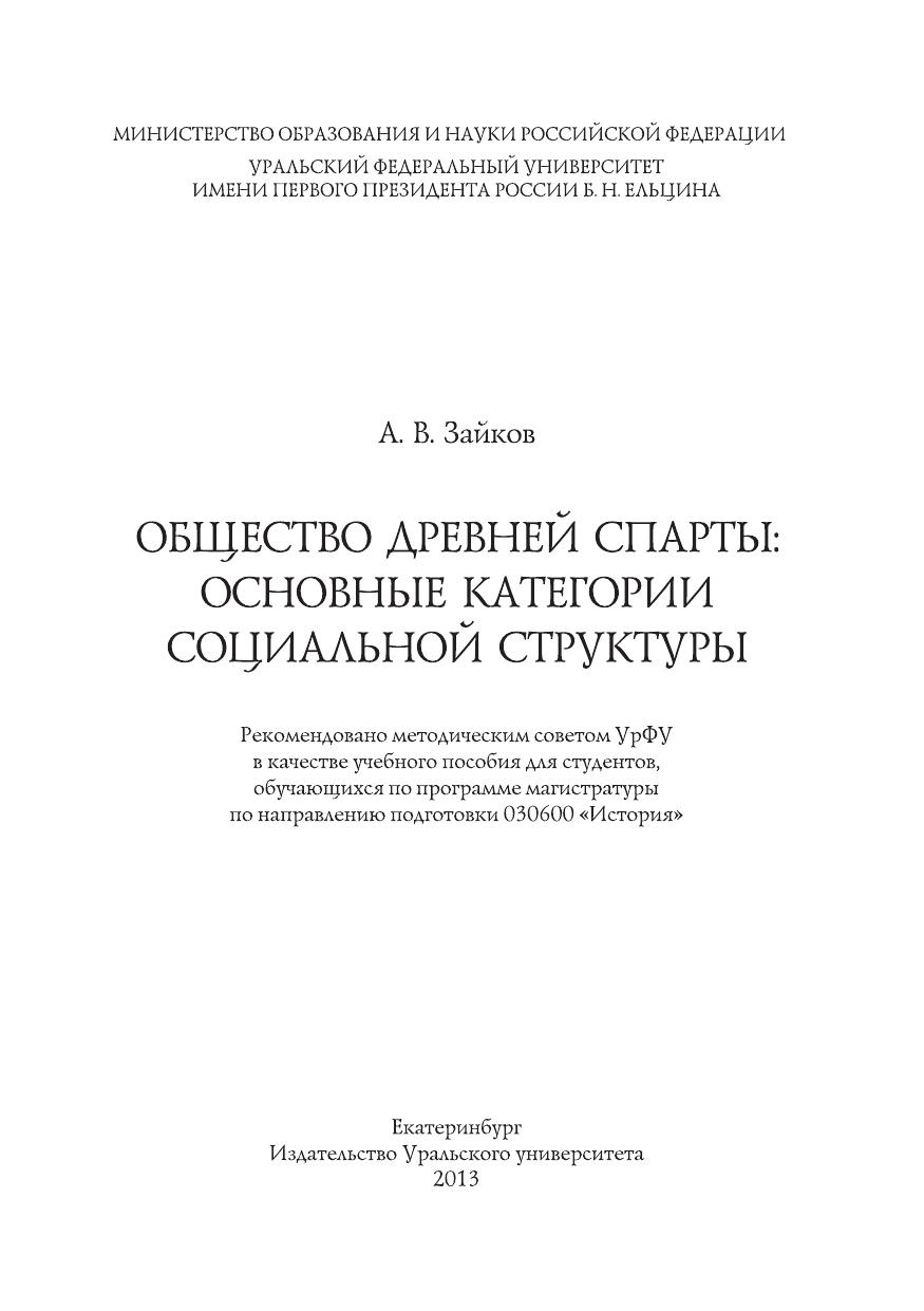 Общество древней Спарты: основные категории социальной структуры: учеб. пособие