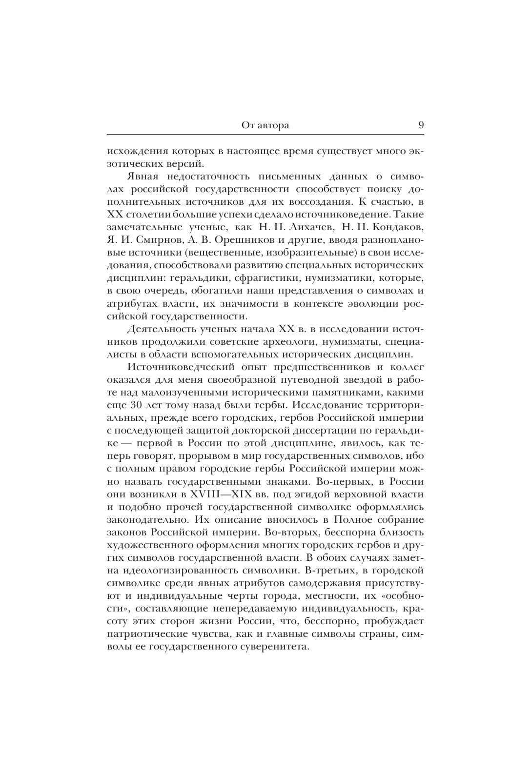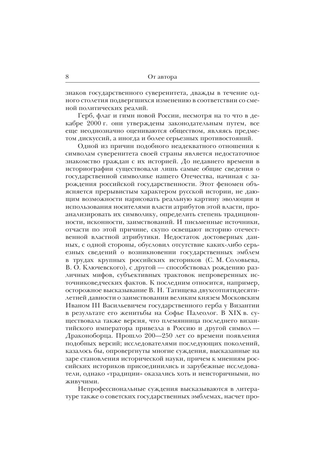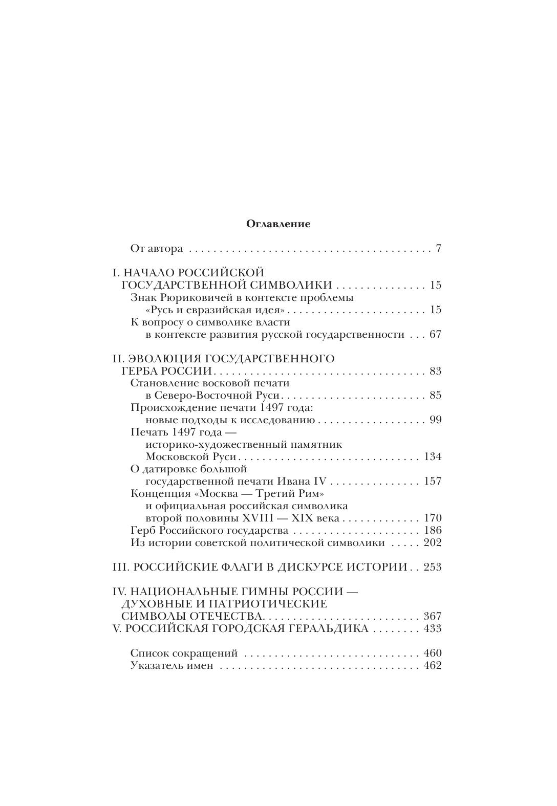 Книга посвящена российской государственной символике. В ней исследуются официальные знаки власти на разных этапах развития отечественной государственности. Анализируя малоиспользуемые в научных исторических трудах монеты, печати, геральдические эмблемы, автор прослеживает неотраженный в письменных источниках сложный путь становления символов российского суверенитета: герба, флага, гимна. В форме очерков воссоздается история властных атрибутов, их трансформация в общегосударственные эмблемы на протяжении столетий. Впервые излагается подробная история российского государственного флага в контексте развития знамен и флагов Европы и в соответствии с общественной событийностью в России. Приводятся новые архивные данные о становлении государственных гимнов Отечества.