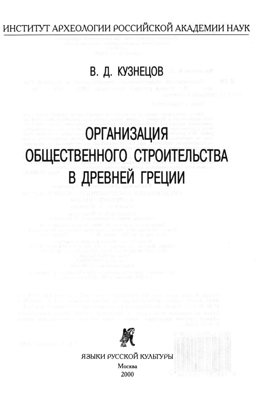 Книга посвящена процессу организации строительства зданий общественного назначения в Древней Греции. Источником для реконструкции этой организации послужили эпиграфические документы, представляющие собой отчеты о деятельности строительных комиссий, избиравшихся для производства работ. Эти документы происходят из ряда полисов и связаны, главным образом, со строительством в крупных святилищах. В книге исследуются такие малоизученные проблемы, как состав комиссий, ответственных за организацию строительства публичных зданий, формы найма рабочей силы на общественное строительство, клаузулы греческого контракта, размеры заработной платы строительных рабочих, свободный и рабский труд на строительной площадке. Предлагаемая монография является первым комплексным исследованием всех сохранившихся древнегреческих строительных отчетов.