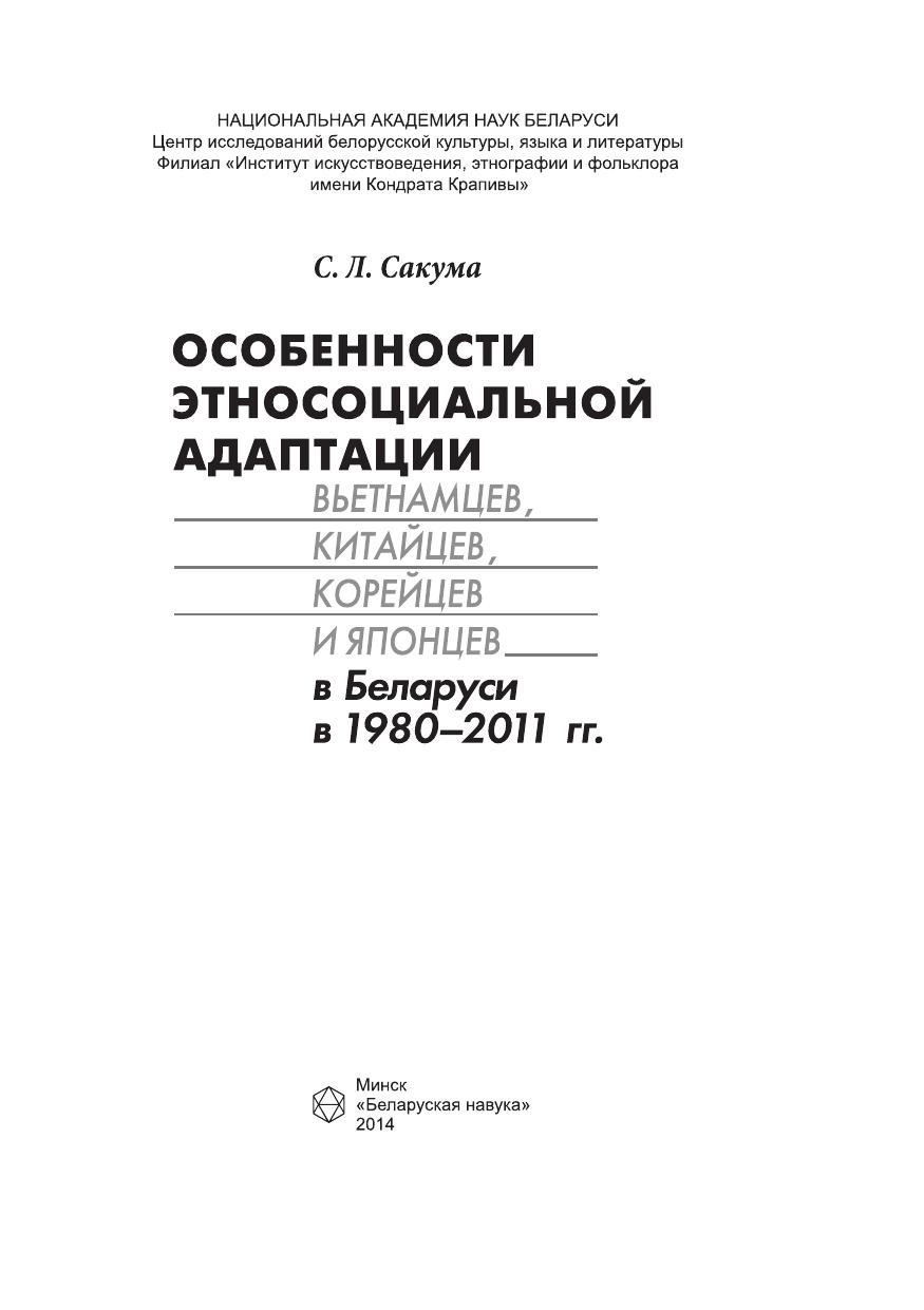 Особенности этносоциальной адаптации вьетнамцев, китайцев, корейцев и японцев в Беларуси в 1980–2011 гг.
