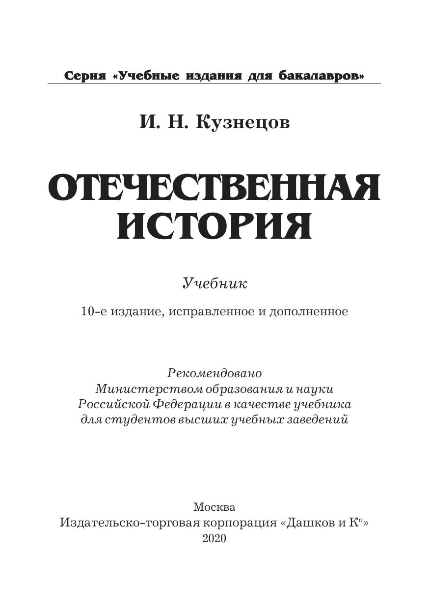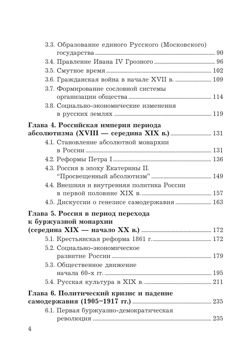 В учебнике на основе российских и зарубежных изданий рассматриваются основные вехи российской истории с IХ по начало ХХI в. Учебный материал излагается по главам в хронологическом порядке, а внутри них по разделам, освещающим наиболее важные проблемы. Основное внимание уделяется рассмотрению сложных, противоречивых исторических процессов России. Приведены хронология основных событий российской истории, словарь основных терминов и понятий, персоналии, библиография. Для студентов, магистрантов, аспирантов, преподавателей высшей и средней школы. Рекомендуется также выпускникам средней школы, абитуриентам и всем интересующимся проблемами отечественной истории.