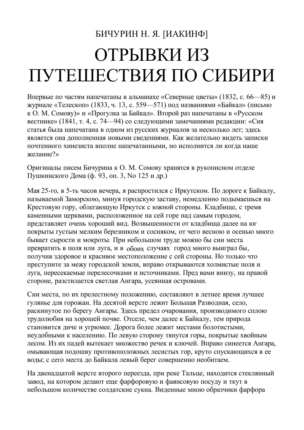 Отрывки из путешествия по Сибири // Русский вестник. — Т. 4, № 10.