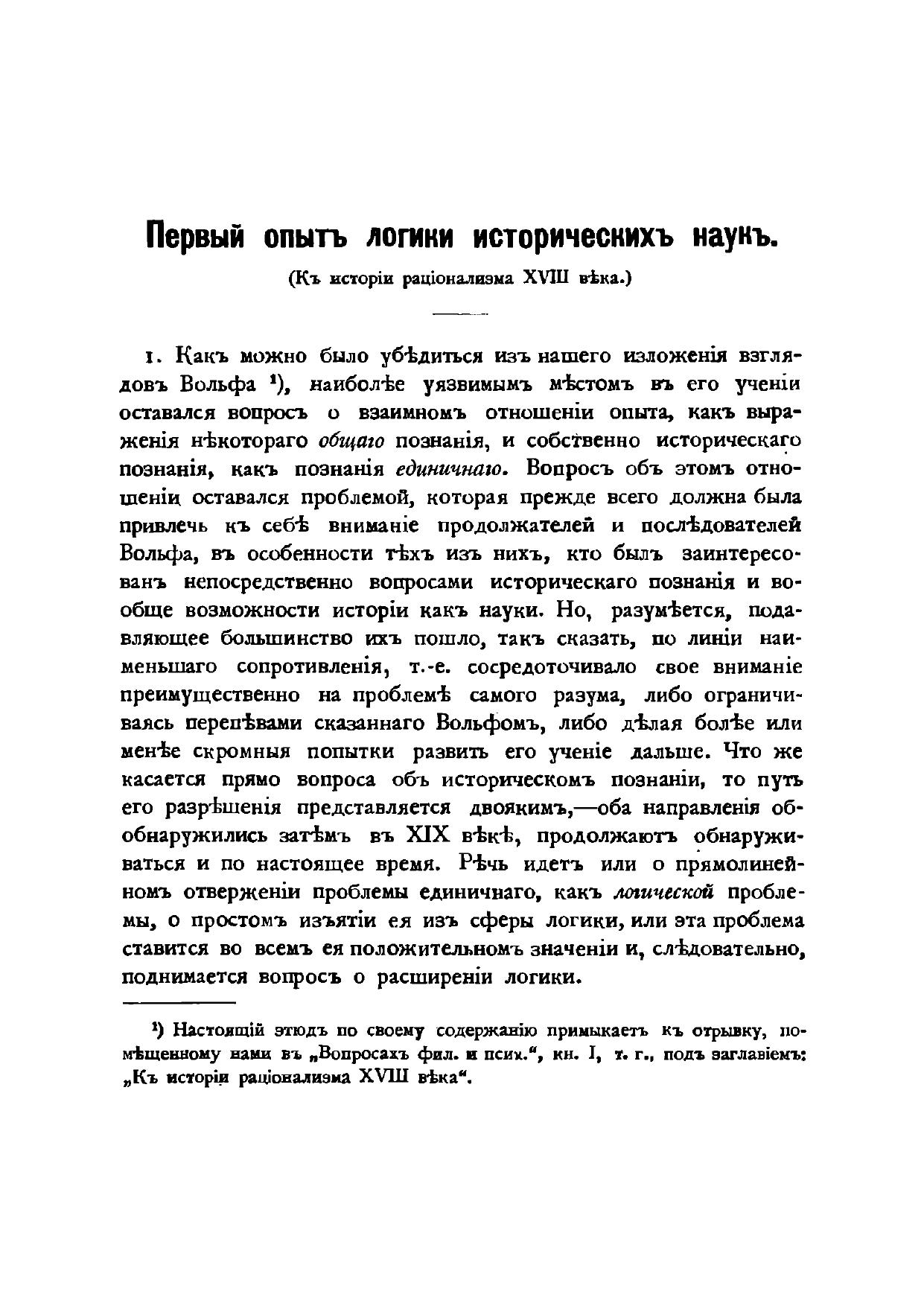 Первый опыт логики исторических наук (К истории рационализма XYIII века)