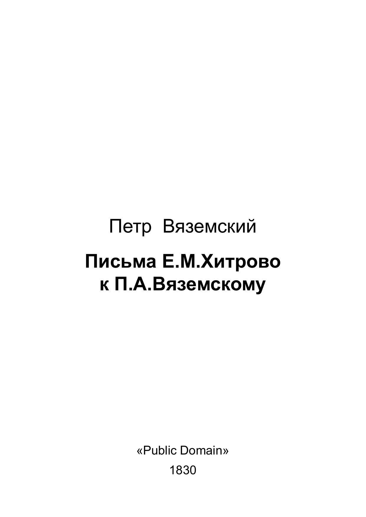 Письма Е.М.Хитрово к П.А.Вяземскому