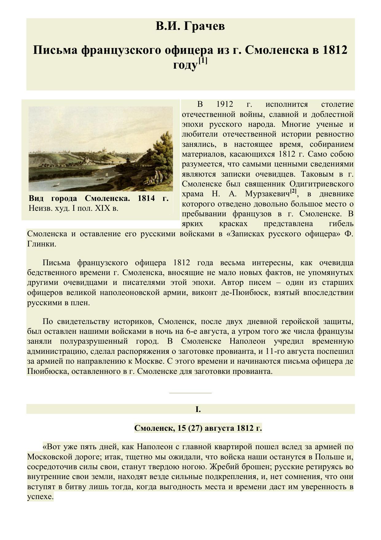 Письма французского офицера из Смоленска в 1812 году