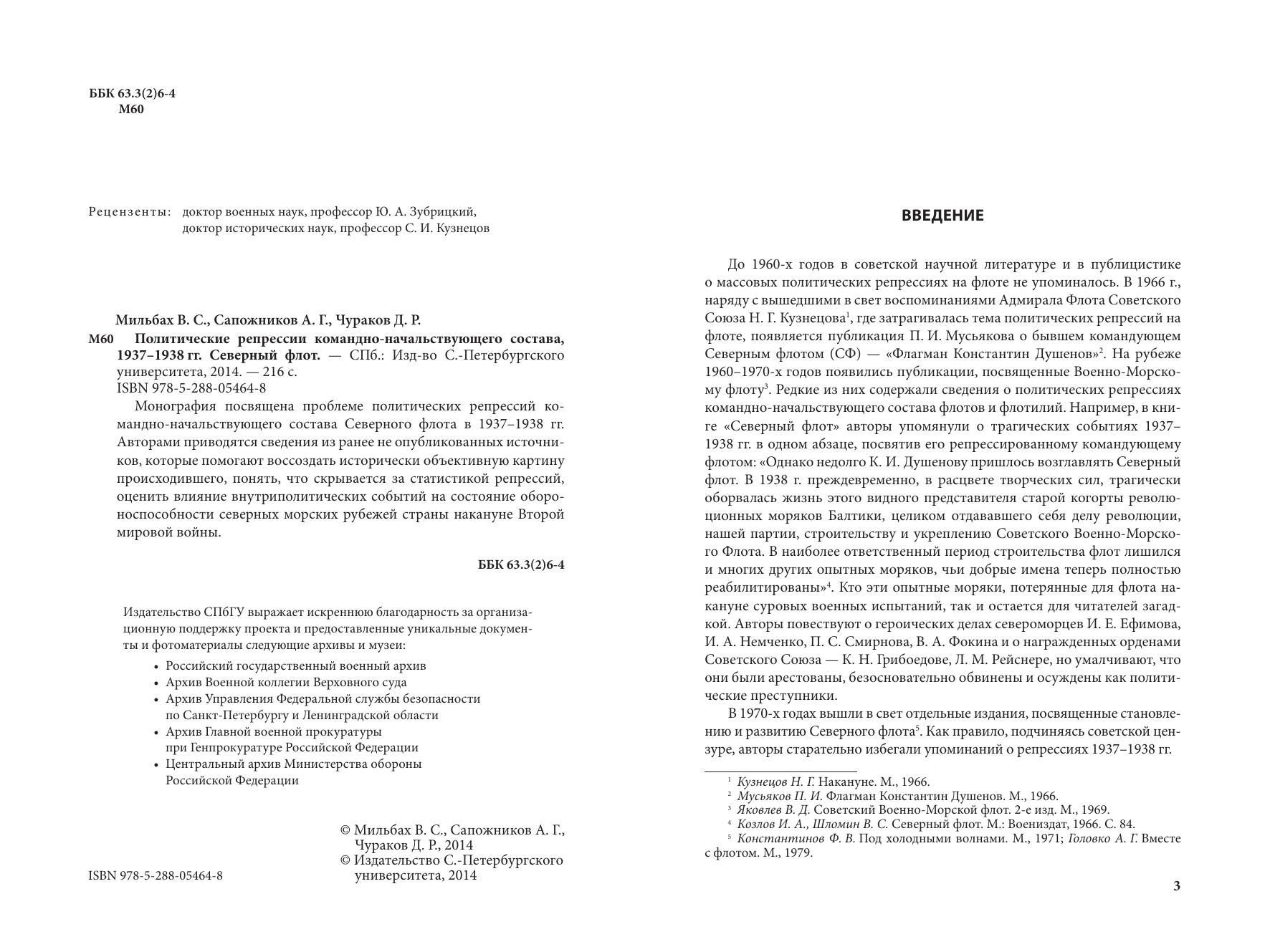 Монография посвящена проблеме политических репрессий командно-начальствующего состава Северного флота в 1937–1938 гг. Авторами приводятся сведения из ранее не опубликованных источников, которые помогают воссоздать исторически объективную картину происходившего, понять, что скрывается за статистикой репрессий, оценить влияние внутриполитических событий на состояние обороноспособности северных морских рубежей страны накануне Второй мировой войны.