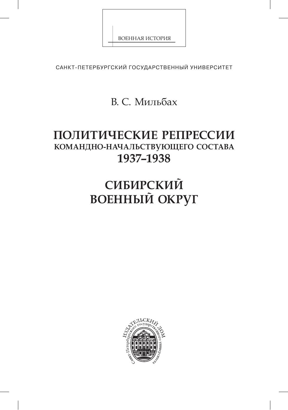 Политические репрессии командно-начальствующего состава (1937–1938 гг.). Сибирский военный округ