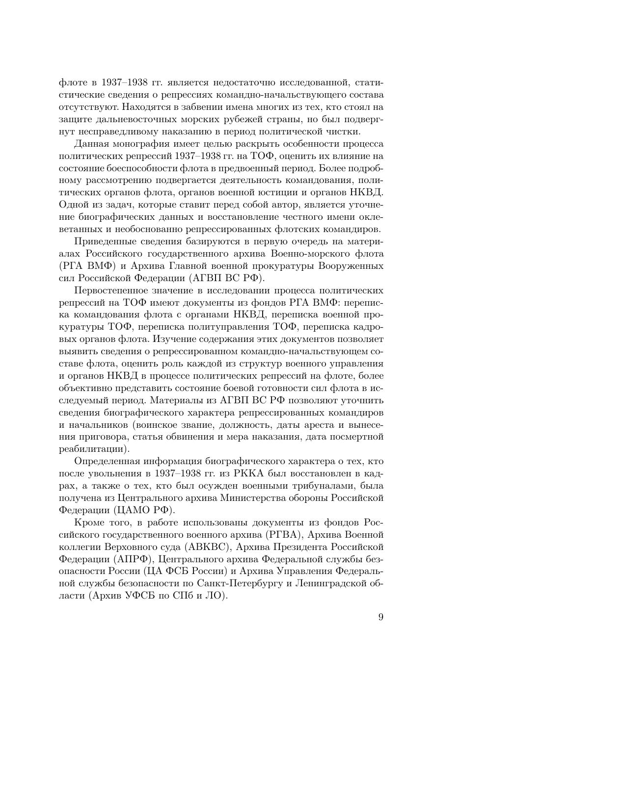 Монография посвящена проблеме политических репрессий командно-начальствующего состава Тихоокеанского флота в 1937–1938 гг. Автором приводятся сведения из ранее не опубликованных источников, которые помогают воссоздать исторически объективную картину происходившего, понять, что скрывается за статистикой репрессий, оценить влияние внутриполитических событий на состояние обороноспособности Дальневосточных морских рубежей накануне Второй мировой войны.