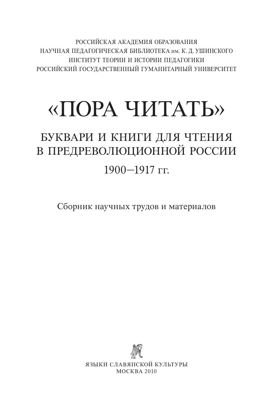 Пора читать: буквари и книги для чтения в предреволюционной России, 1900—1917 гг.