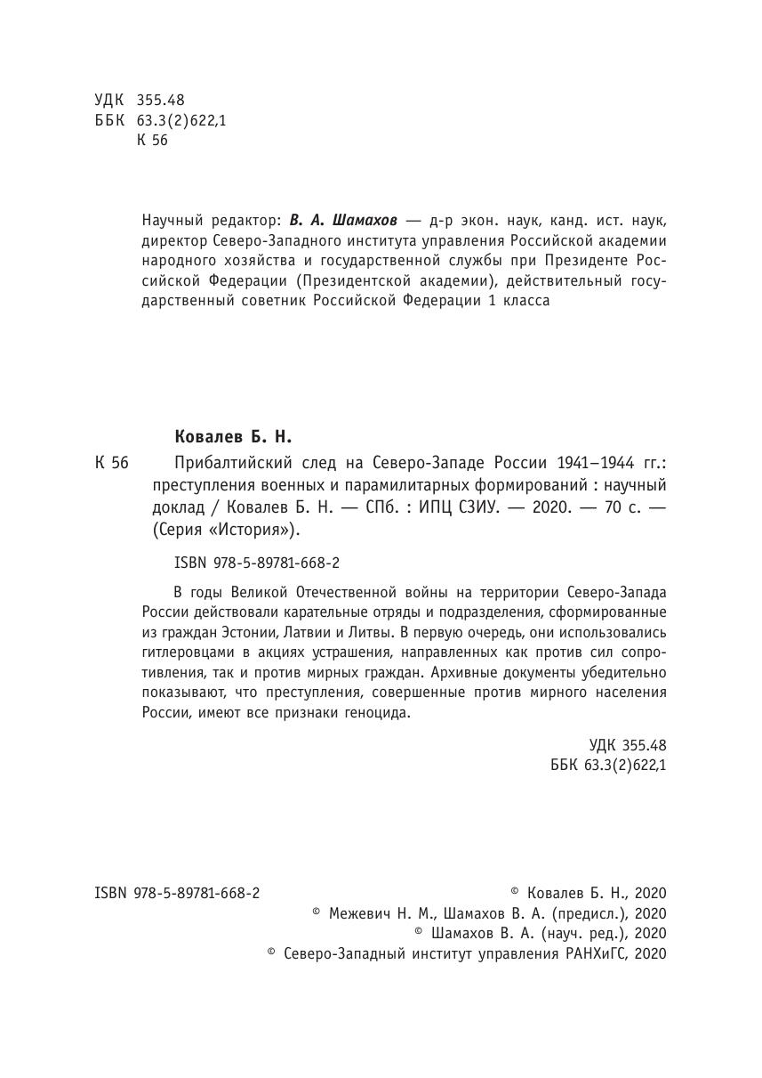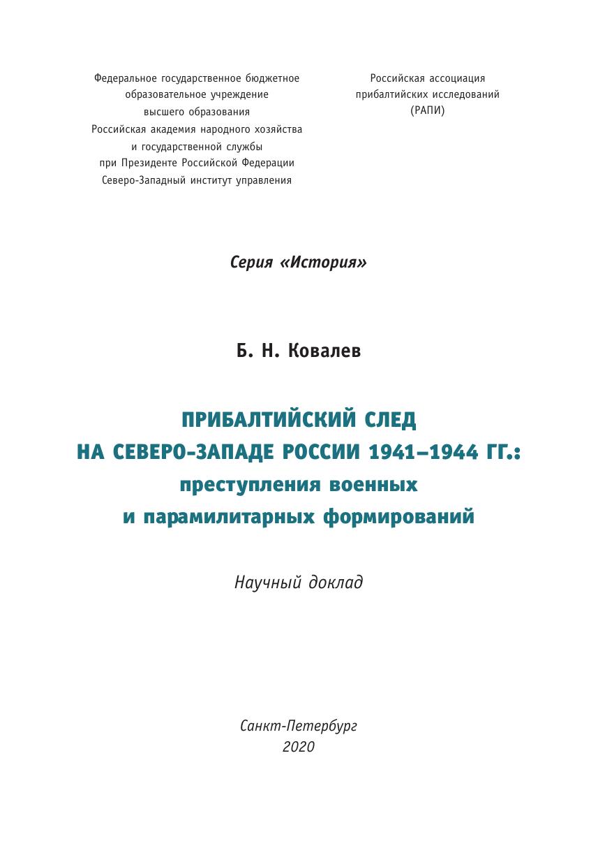 Прибалтийский след на Северо-Западе России 1941–1944 гг.: преступления военных и парамилитарных формирований: научный доклад