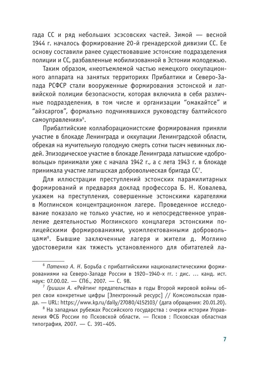 В годы Великой Отечественной войны на территории Северо-Запада России действовали карательные отряды и подразделения, сформированные из граждан Эстонии, Латвии и Литвы. В первую очередь, они использовались гитлеровцами в акциях устрашения, направленных как против сил сопротивления, так и против мирных граждан. Архивные документы убедительно показывают, что преступления, совершенные против мирного населения России, имеют все признаки геноцида.