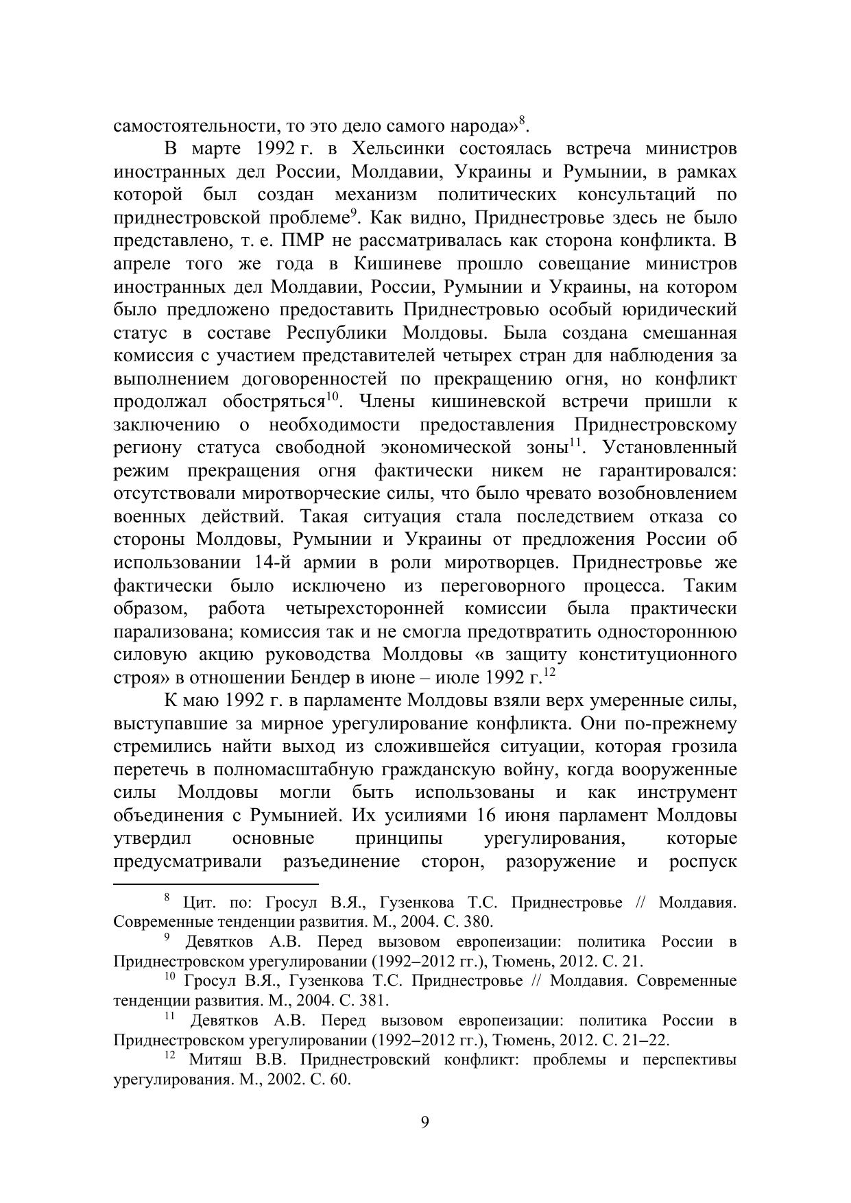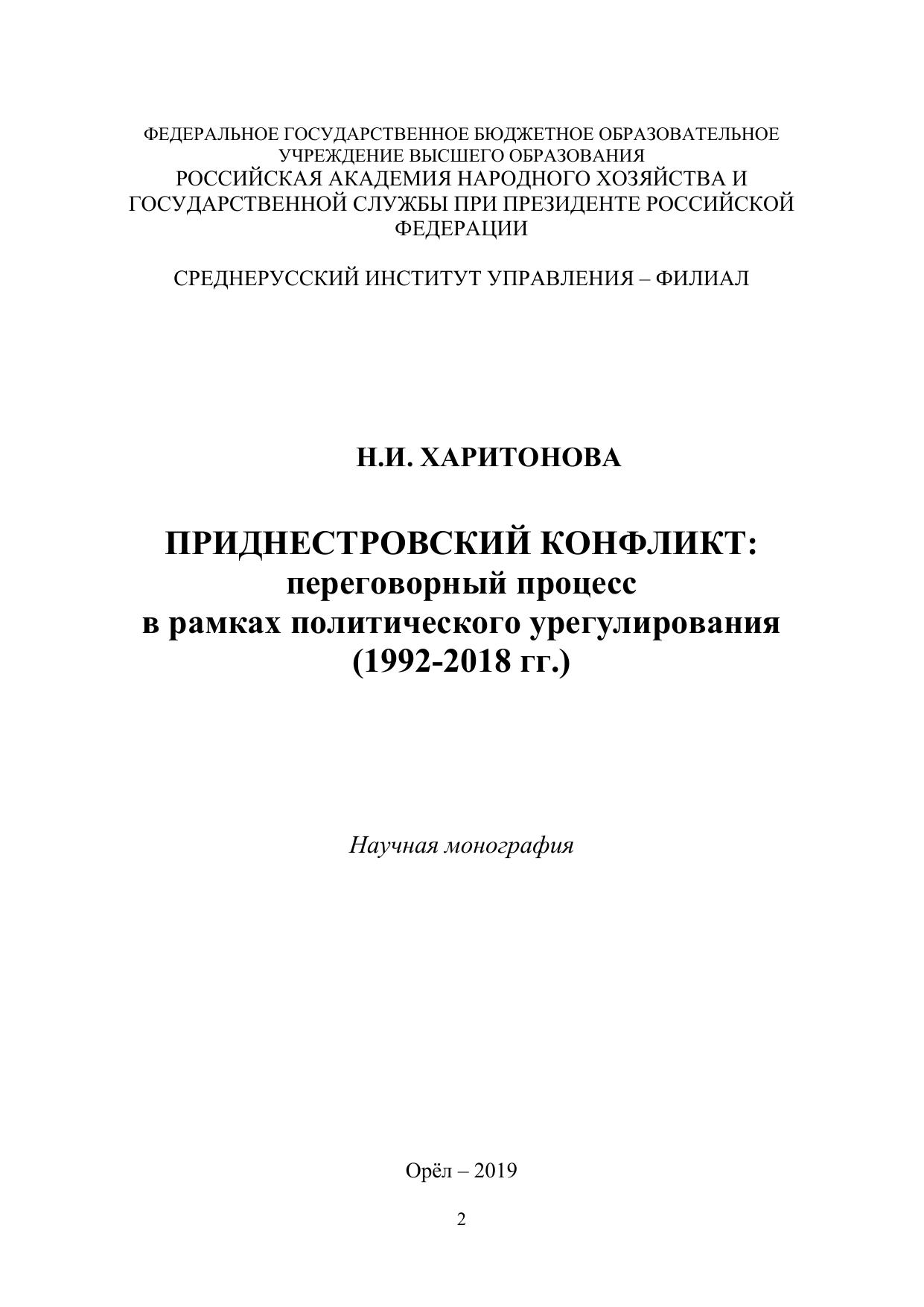 Приднестровский конфликт: переговорный процесс в рамках политического урегулирования (1992-2018 гг.)