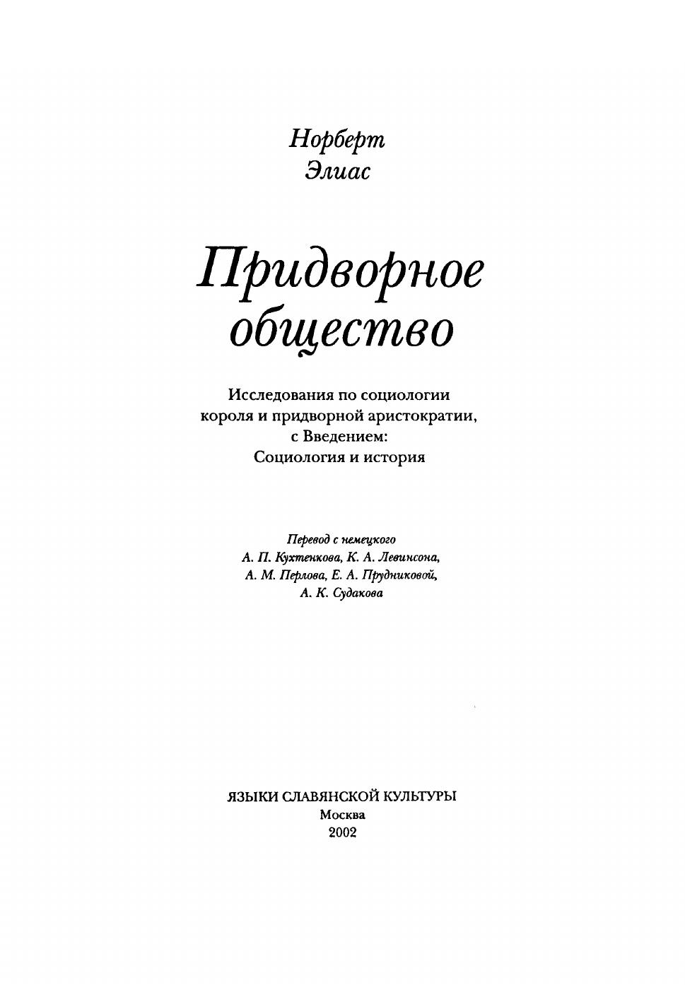 Придворное общество: Исследования по социологии короля и придворной аристократии, с Введением: социология и история