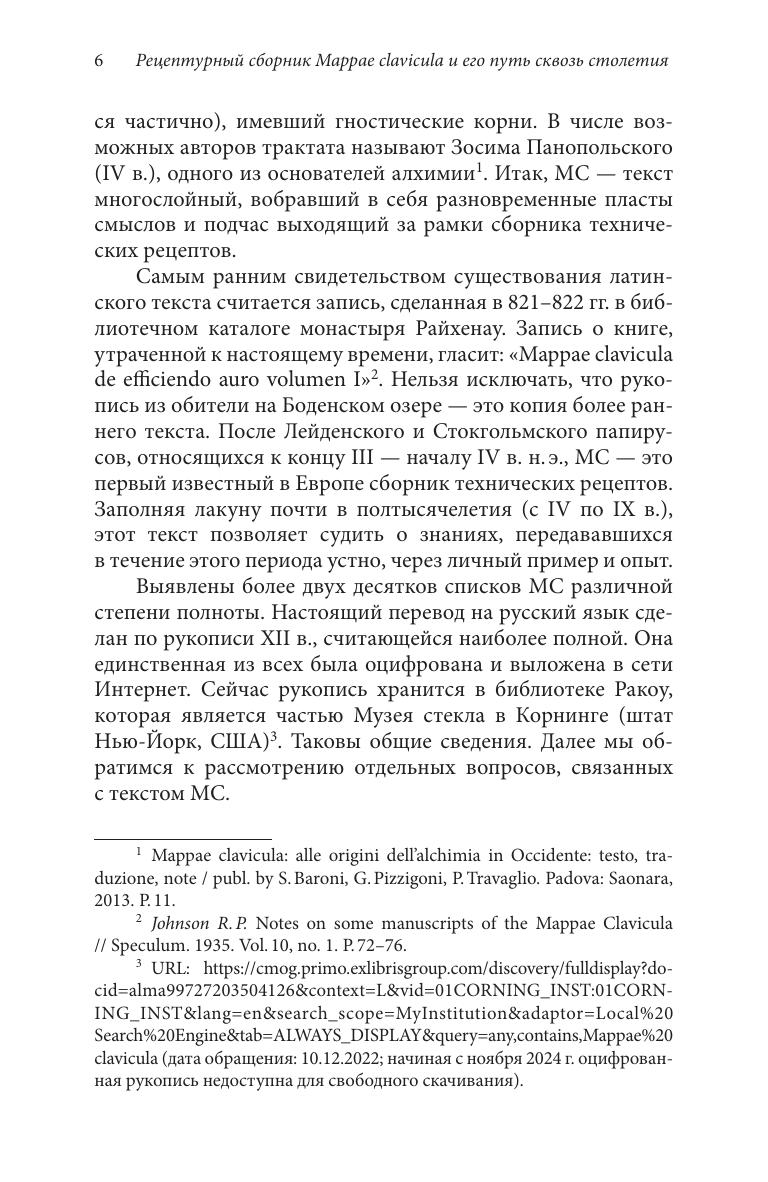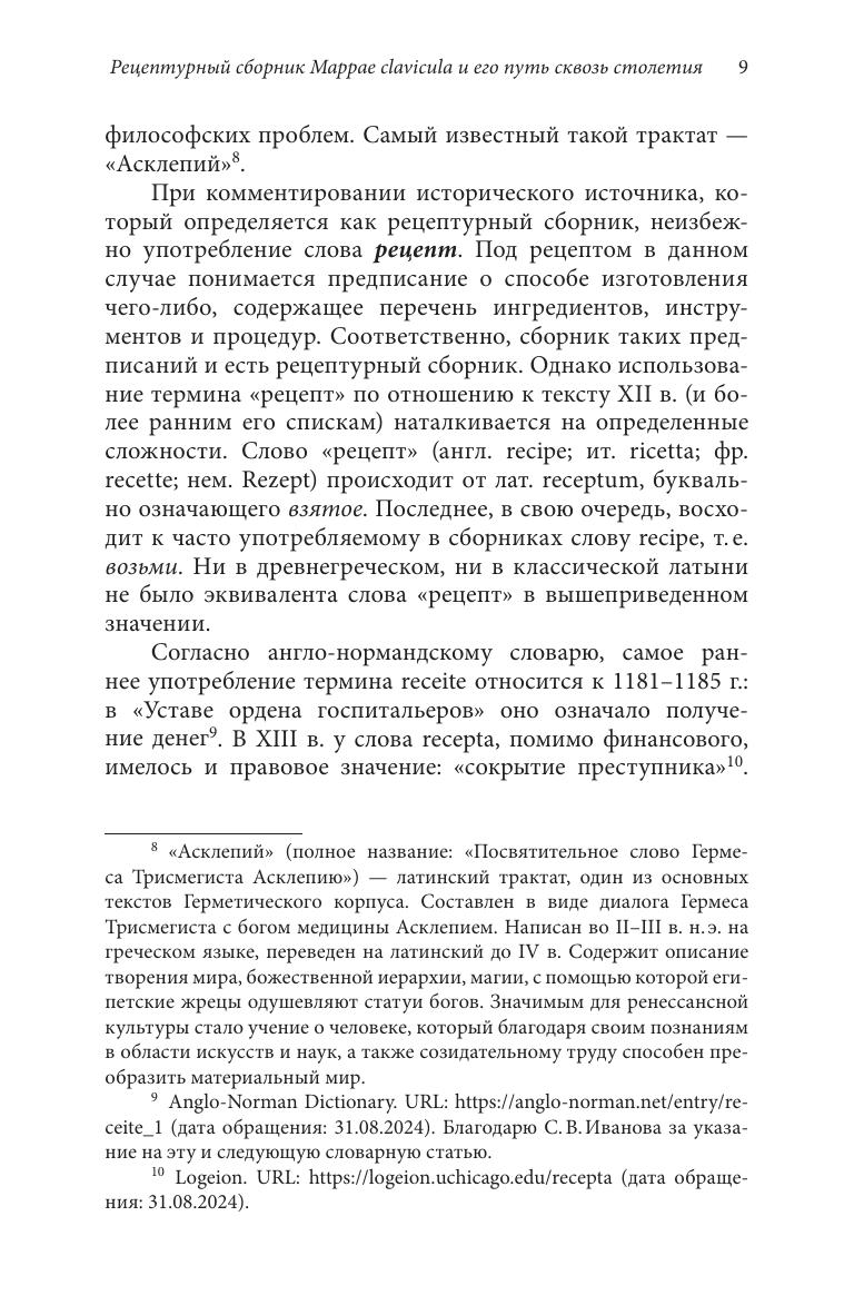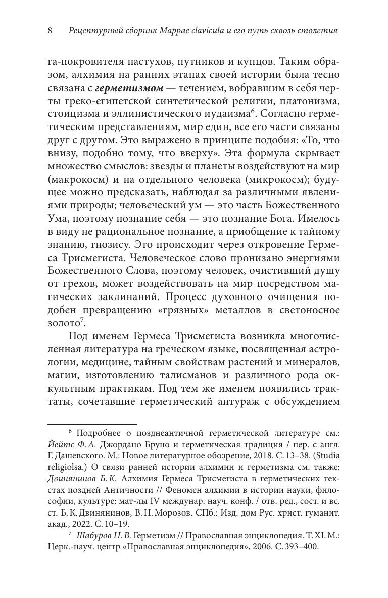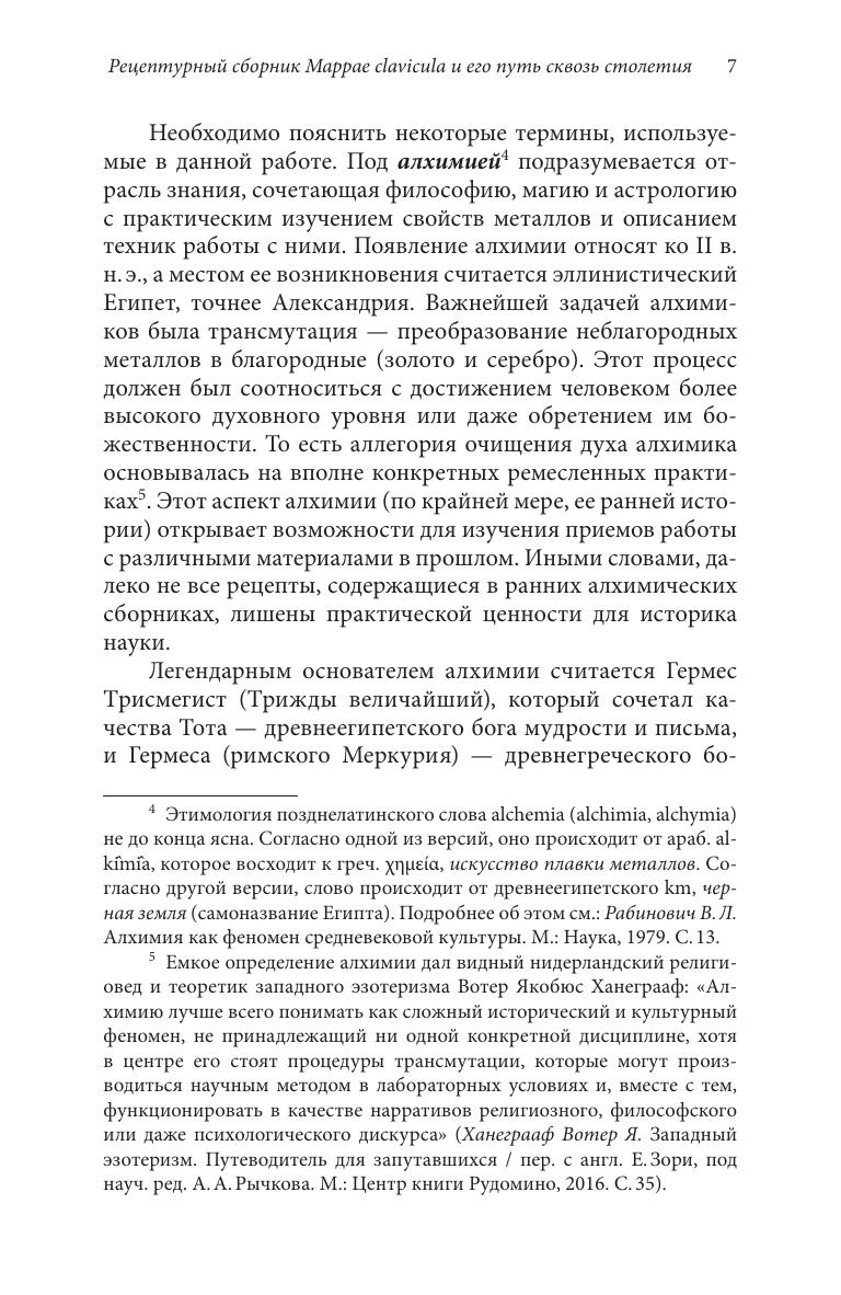 Настоящее издание — комментированный перевод с латинского языка средневекового рецептурного сборника Mappae сlavicula («Ключ к секретам мастерства»), ценного источника по истории технологий и материалов, а также идей, мифов и представлений, связанных с античным и средневековым ремеслом. В книге насчитывается почти три сотни глав, тематика которых чрезвычайно разнообразна: обработка металлов, приготовление чернил, красок и сладостей, окрашивание нескольких типов поверхностей, возведение осадных орудий и зданий, изготовление отравленных стрел, имитация золота и драгоценных камней. Основным источником для «Ключа» послужил греческий текст, появившийся на рубеже III–IV вв. в среде александрийских алхимиков и почитателей Гермеса Трисмегиста. При переводе на латынь «герметические» черты не были полностью утрачены, и это обстоятельство позволяет судить о том, какими путями, помимо арабского, алхимические знания проникали в средневековую Европу. Книга рассчитана как на учёных-специалистов (историков, искусствоведов, реставраторов), так и на широкий круг читателей, интересующихся историей ремесла и технологий.
