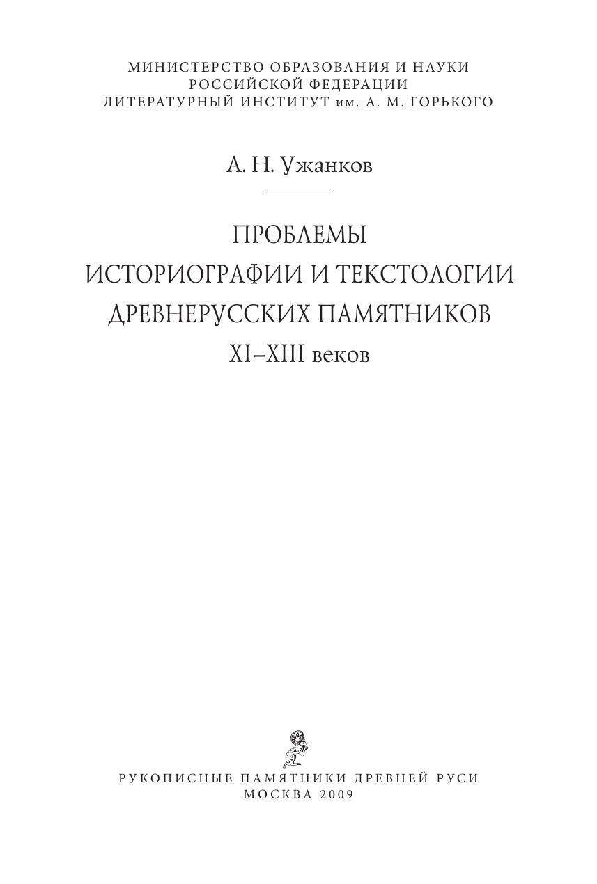 Проблемы историографии и текстологии древнерусских памятников XI—XIII вв.