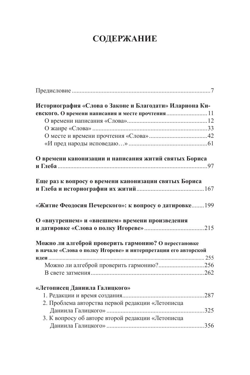 В книгу вошли статьи по историографии значительнейших произведений древнерусской словесности: "Слова о Законе и Благодати", "Чтения" и "Сказания" о святых Борисе и Глебе, "Жития Феодосия Печерского", "Слова о полку Игореве", "Летописца Даниила Галицкого", "Слова о погибели Русской земли", "Повести о житии Александра Невского". Ответить на вопросы о времени и месте их написания, значит приблизиться к раскрытию авторского замысла. Поэтому в статьях вопросы историографии тесно связаны с интерпретацией древнерусских творений. Представленные здесь очерки прежде были опубликованы в различных научных журналах и коллективных сборниках, ставших практически недоступными, а многие выводы, приведенные в них, уже вошли в научный оборот. Некоторые положения вызвали научную дискуссию и потребовали нового к ним обращения и ответа оппонентам. Книга адресована как специалистам-медиевистам, так и студентам, аспирантам и всем интересующимся проблемами древнерусской словесности.