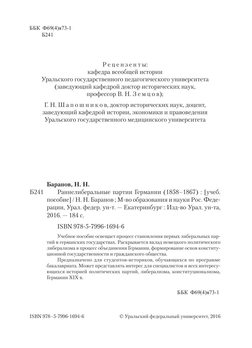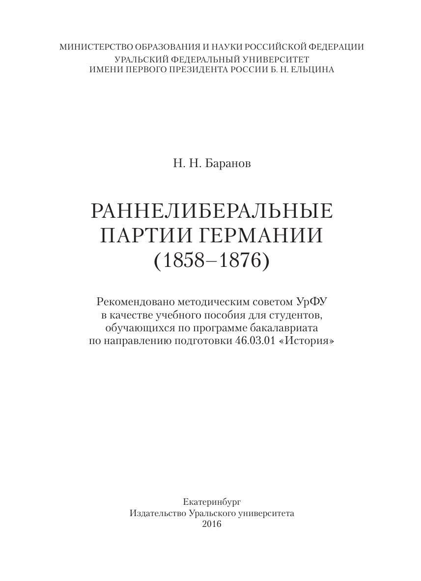 Раннелиберальные партии Германии (1858–1867): учеб. пособие