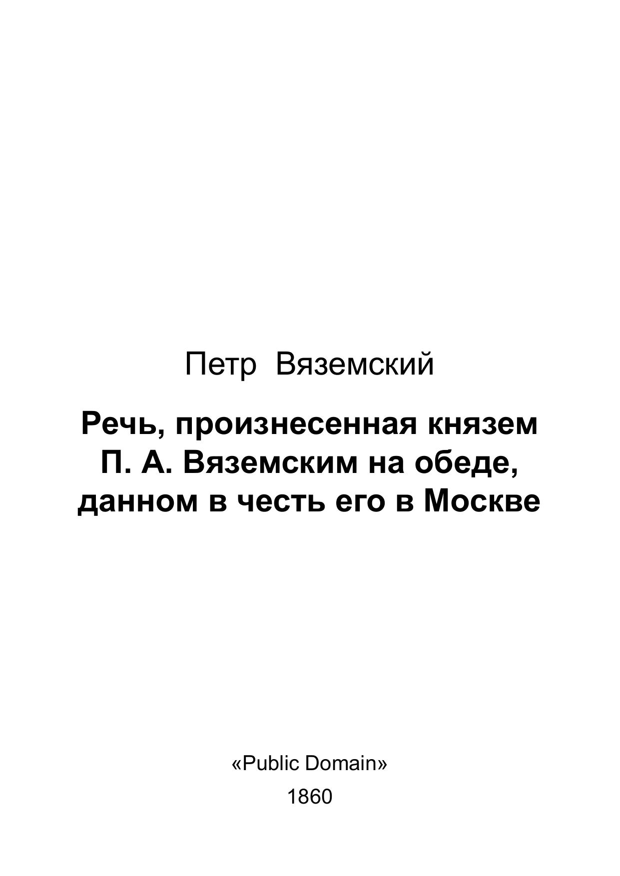 Речь, произнесенная князем П. А. Вяземским на обеде, данном в честь его в Москве