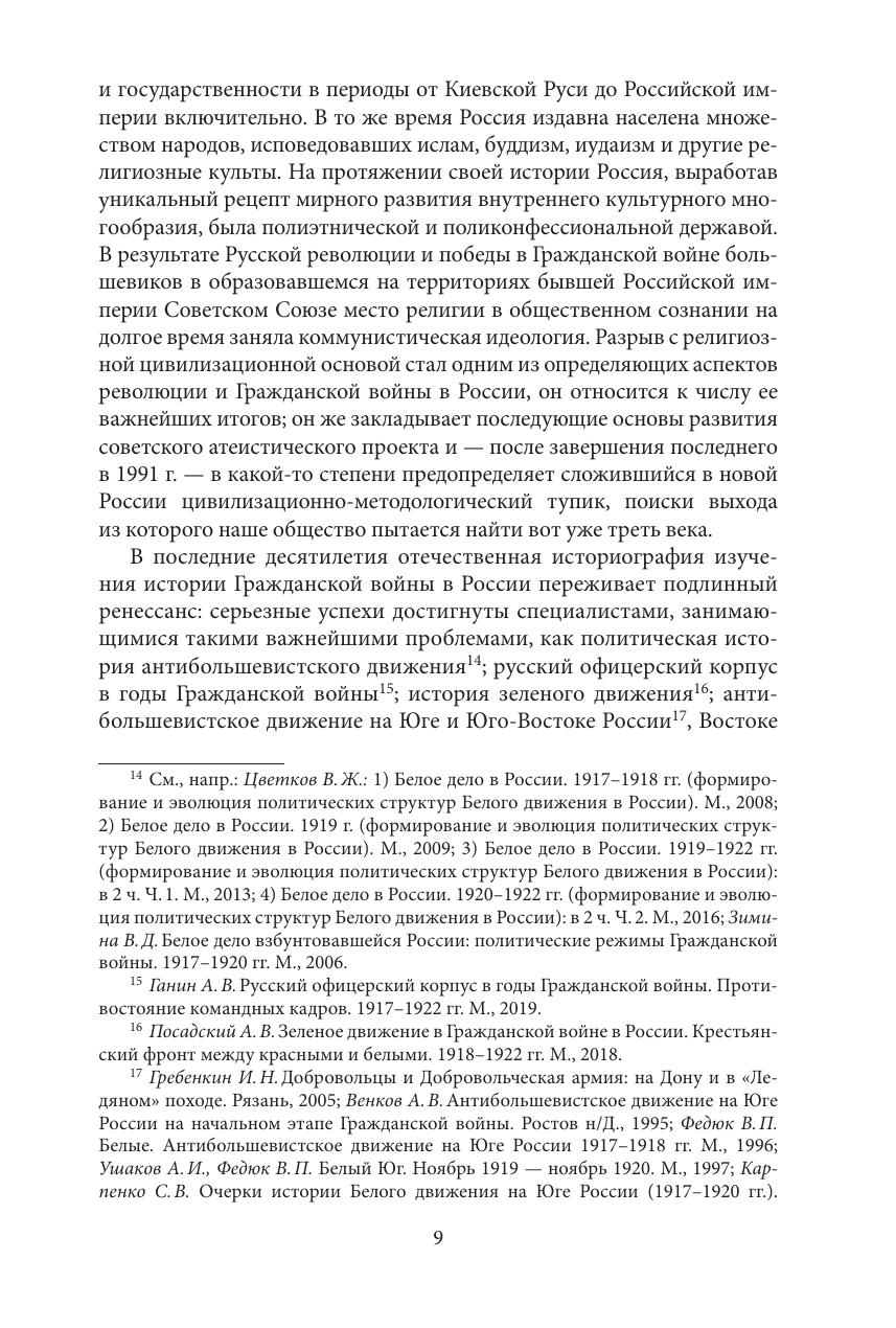В монографии, подготовленной коллективом ведущих специалистов-историков, рассматривается вопрос о роли и значимости религиозного фактора в годы Гражданской войны в России. На основе уникального архивного материала, собранного в десятках российских и зарубежных архивов, авторы воссоздают широкую панораму духовной жизни России в 1918-1922 гг. в целом ряде регионов страны. Особое внимание уделяется судьбе православного духовенства, реконструирована биография многочисленных его представителей, как архиереев, так и рядовых священнослужителей. Авторы также обращаются к мало исследованным в исторической науке темам и рассматривают исламский фактор в годы Гражданской войны и религиозный фактор в жизни российских евреев в этот период. Книга адресована самой широкой читательской аудитории и будет интересна как специалистам, так и всем, кому небезразлична судьба нашего Отечества.