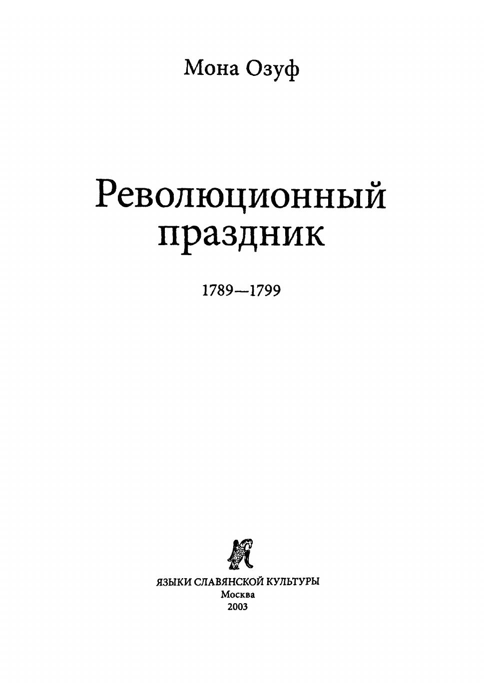 Монография Моны Озуф "Революционный праздник" - характерный пример так называемого "пионерского исследования". В нем уже в 1976 году проявились тенденции, и по сей день актуальные и высоко ценимые в исторической науке: интерес к повседневной жизни и ее "ритуалам", исследование политики как церемониала и революции как антропологического феномена, выяснение взаимосвязи между идеологическими императивами и конструированием утопических пространственно-временных моделей. Выстроенная на широком круге источников, в том числе на архивных документах и прессе революционных лет, сочетающая глубину обобщений и исторических афоризмов с тонко конкретикой наблюдений, эта книга стала событием как во Франции, так и за рубежом, во многом изменила представления о Французской революции, предложив новаторские пути ее изучения.