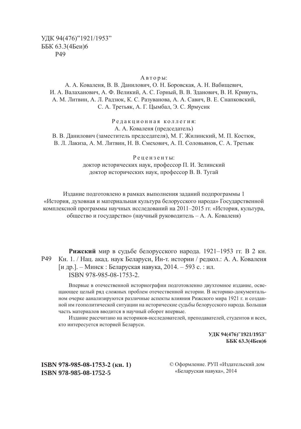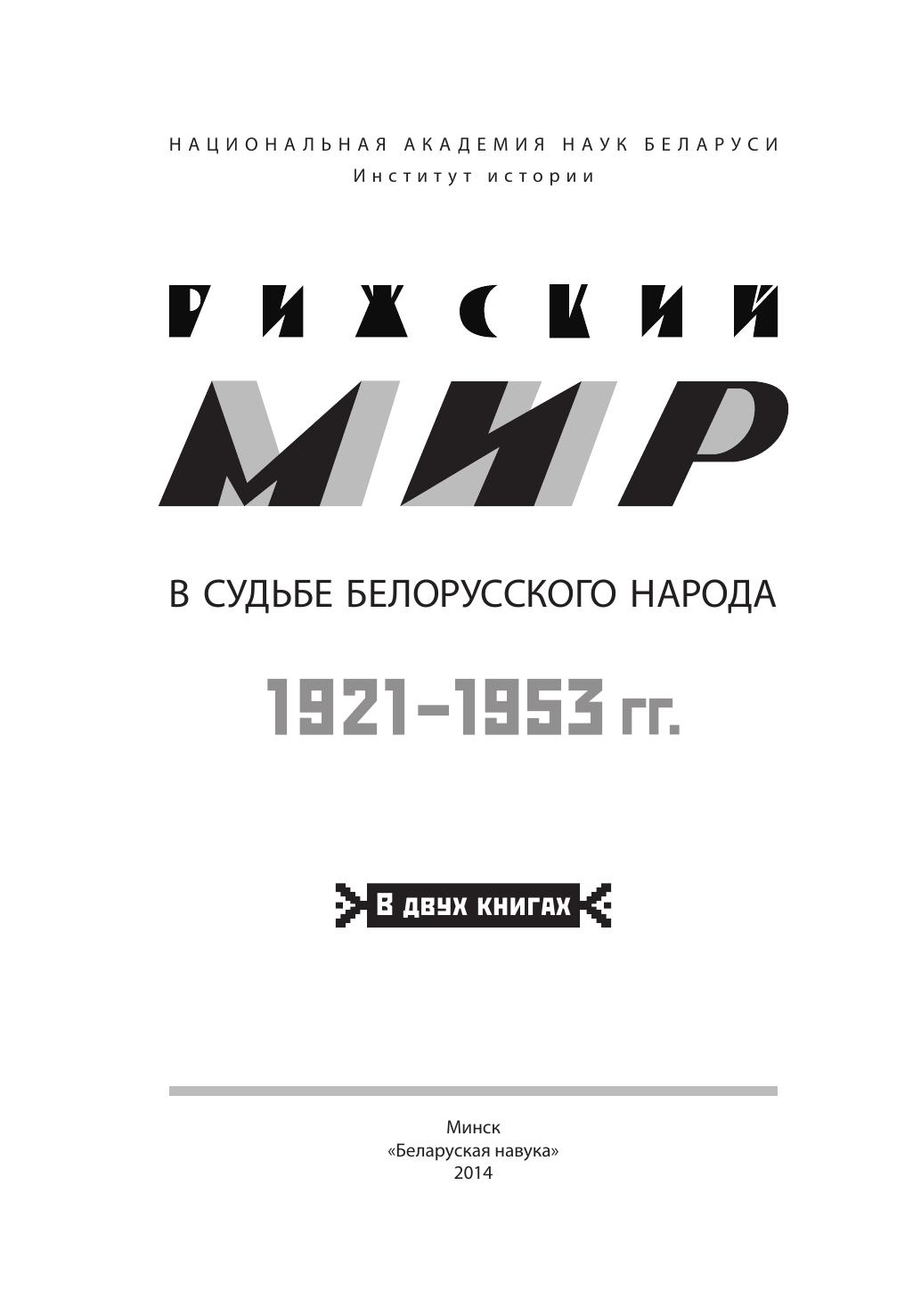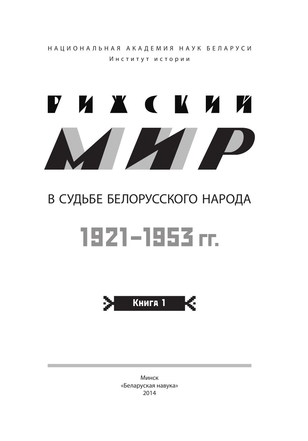 Рижский мир в судьбе белорусского народа. 1921–1953 гг. В 2 кн. Кн. 1