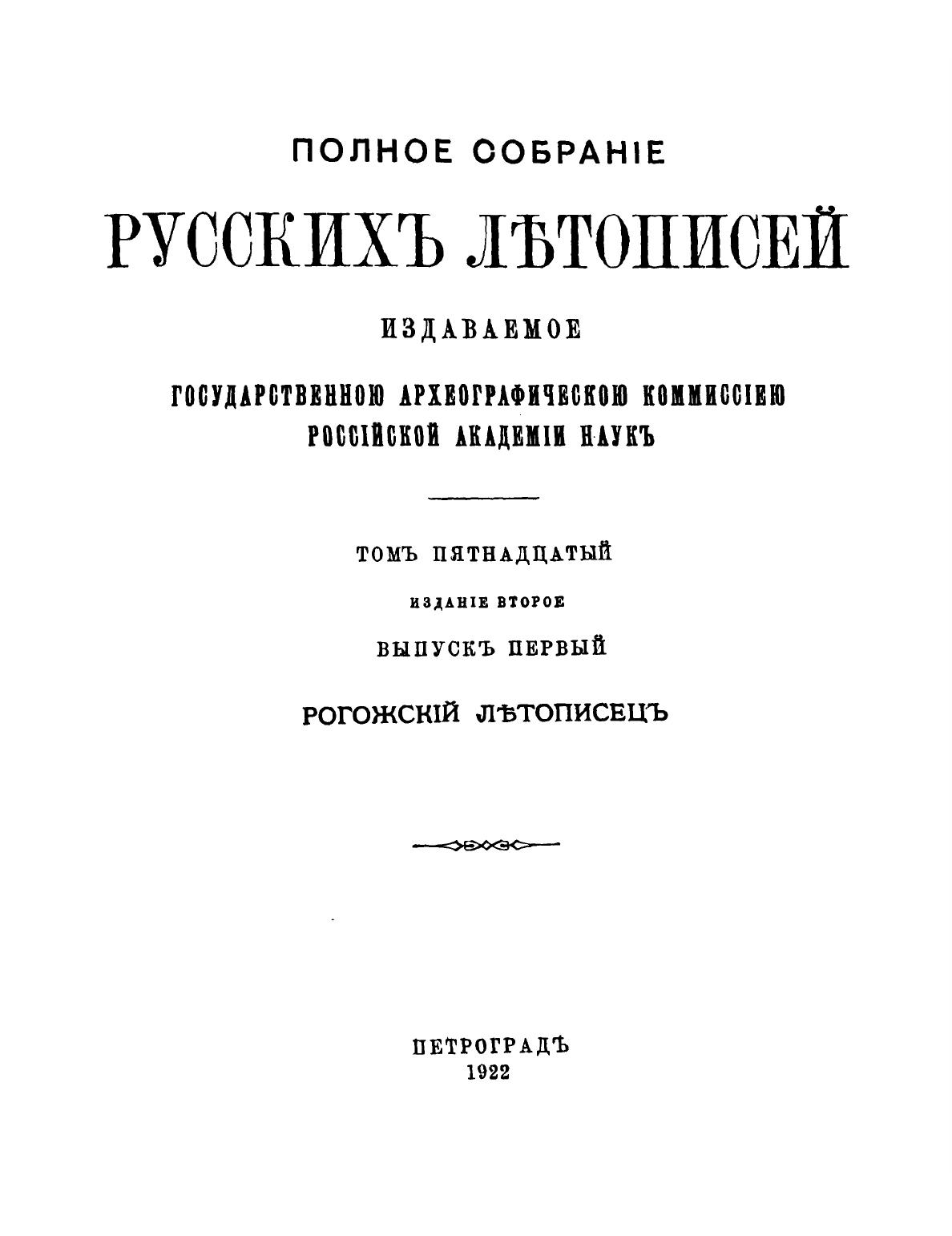 Рогожский летописец. Тверской сборник (Полное собрание русских летописей. Т. XV)