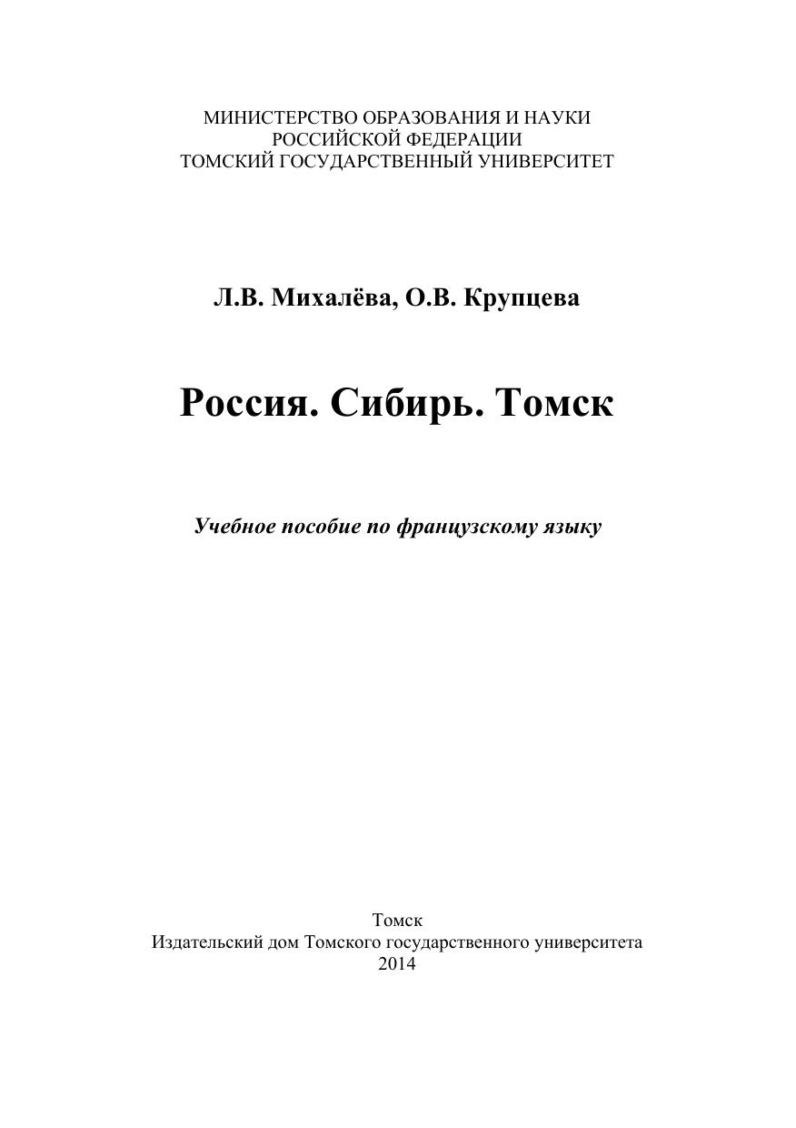 В учебном пособии представлены материалы по историческому обзору развития России, Сибири и Томска: учебные тексты и комплекс упражнений. Цель пособия – формирование у учащихся лингвострановедческих компетентностей на основе учебных аутентичных материалов о родной стране. Для студентов и аспирантов высших учебных заведений, а также всех, изучающих французский язык самостоятельно.
