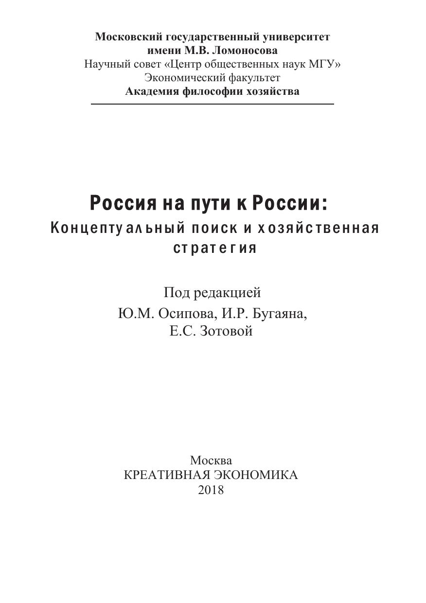 Россия на пути к России: концептуальный поиск и хозяйственная стратегия