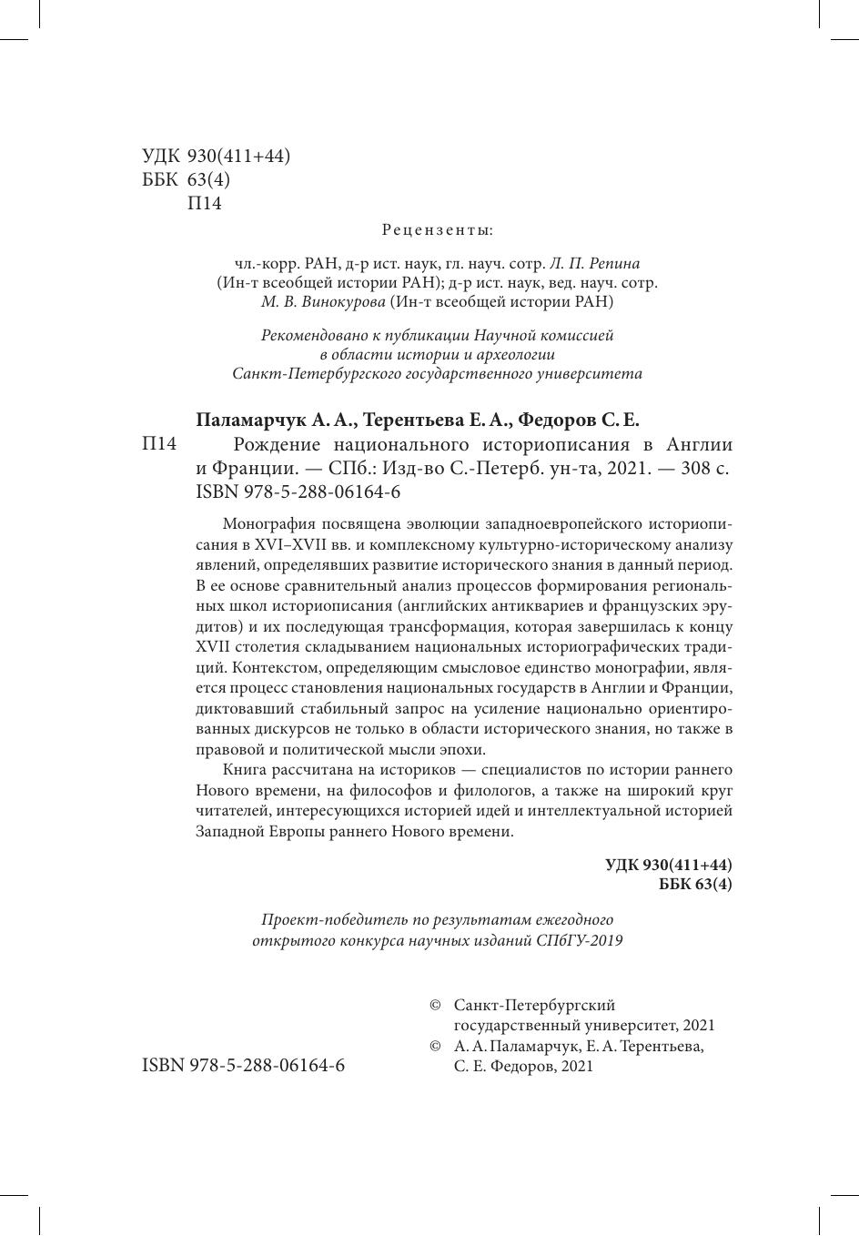 Монография посвящена эволюции западноевропейского историописания в XVI-XVII вв. и комплексному культурно-историческому анализу явлений, определявших развитие исторического знания в данный период. В ее основе сравнительный анализ процессов формирования региональных школ историописания (английских антиквариев и французских эрудитов) и их последующая трансформация, которая завершилась к концу XVII столетия складыванием национальных историографических традиций. Контекстом, определяющим смысловое единство монографии, является процесс становления национальных государств в Англии и Франции, диктовавший стабильный запрос на усиление национально ориентированных дискурсов не только в области исторического знания, но также в правовой и политической мысли эпохи.