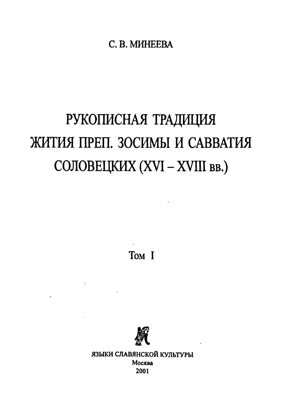 Рукописная традиция Жития преп. Зосимы и Савватия Соловецких (XVI-XVIII вв.). Т. I