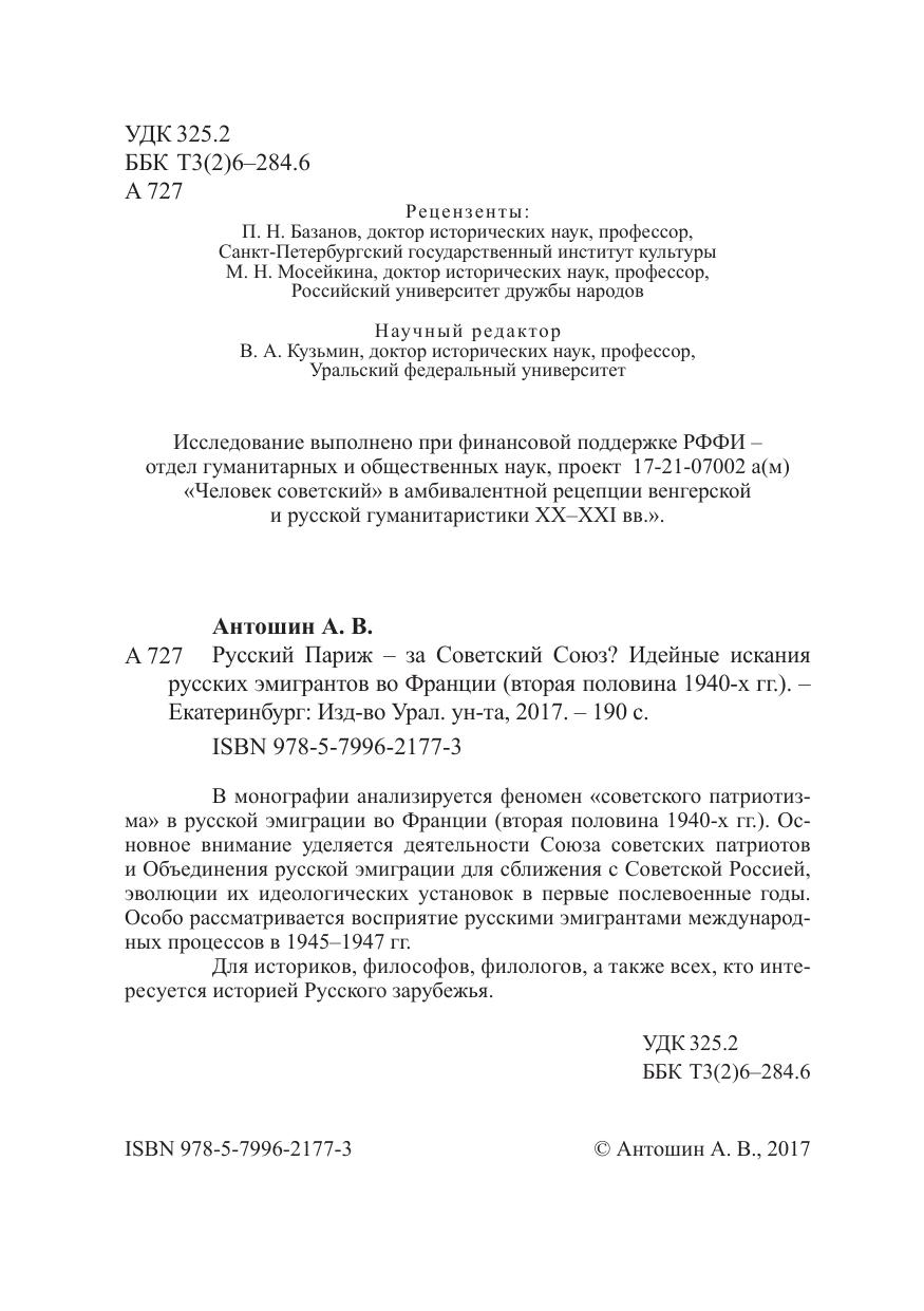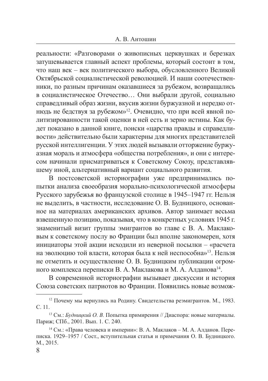 Русский Париж – за Советский Союз? Идейные искания русских эмигрантов во Франции (вторая половина 1940-х гг.).