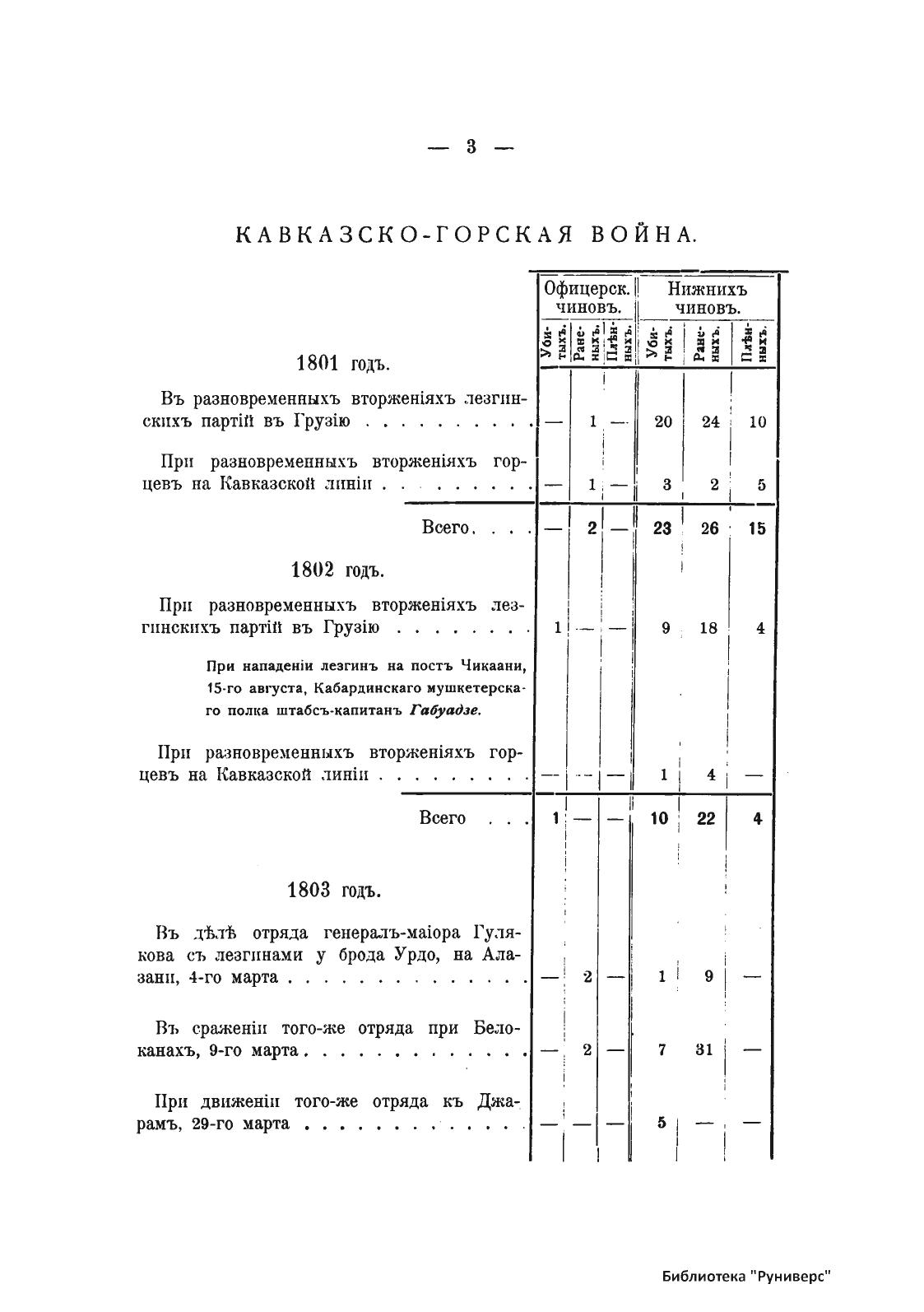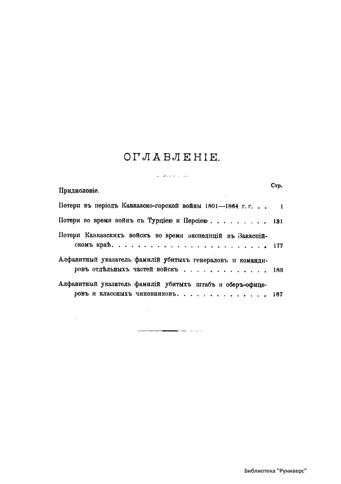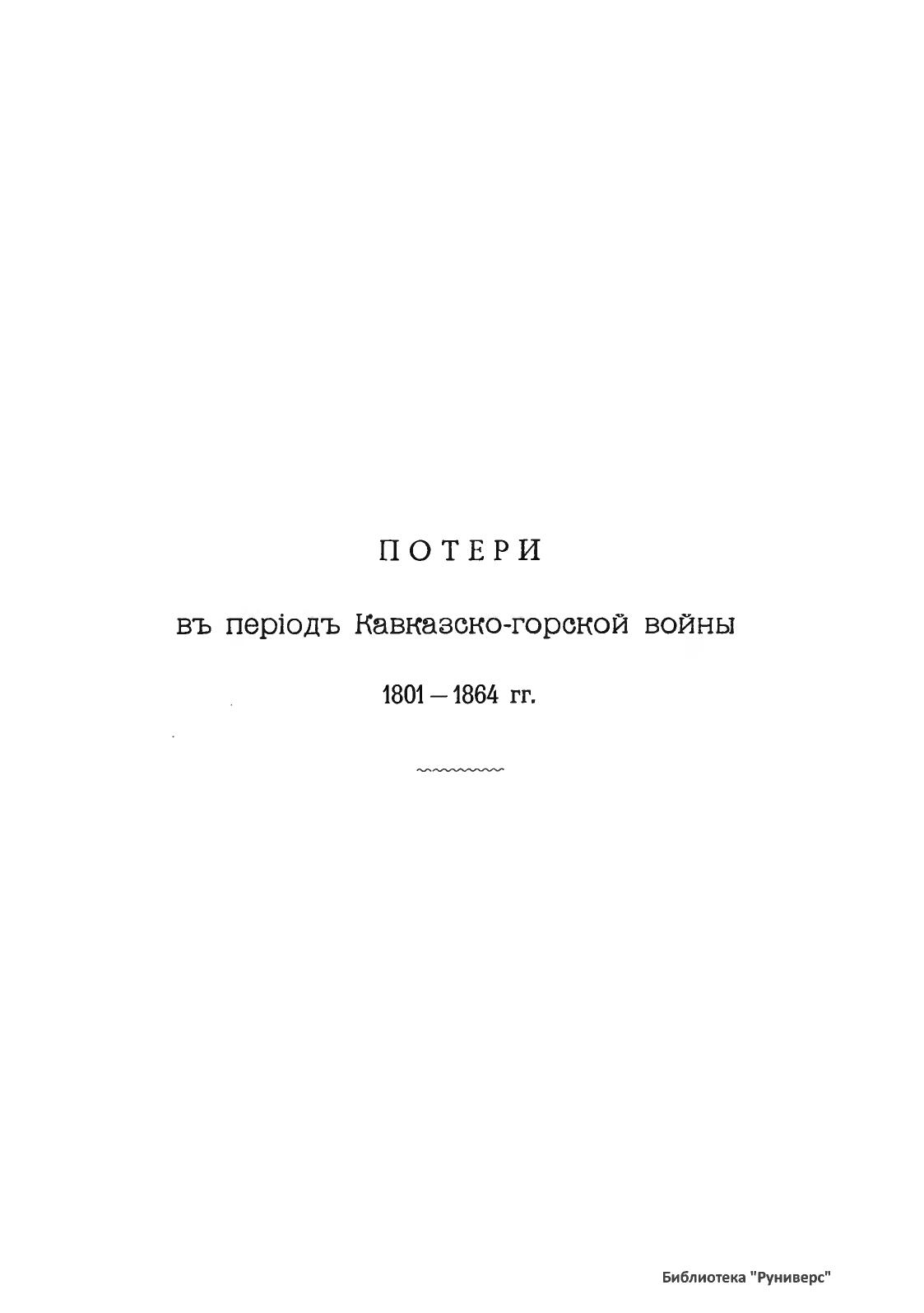 Сборник сведений о потерях Кавказских войск во время войн Кавказско-Горской, Персидской, Турецких и в Закаспийском крае 1801—1885 гг