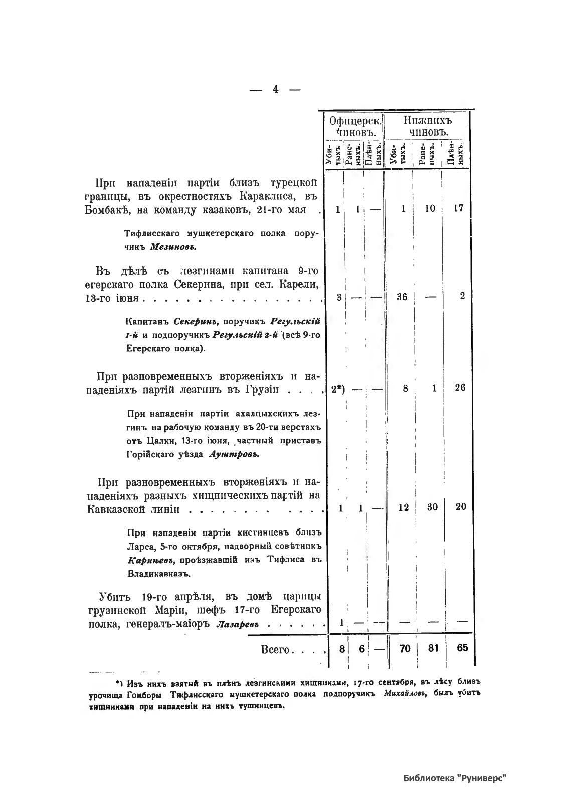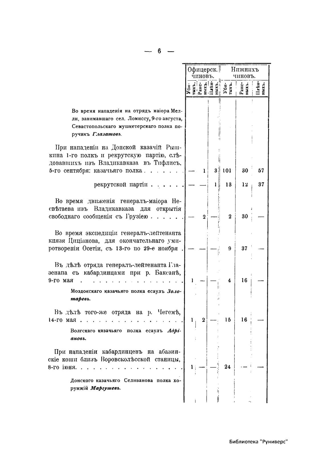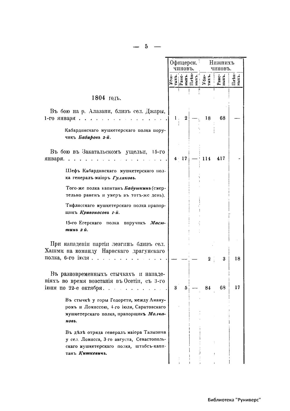 Сборник сведений о потерях Кавказских войск во время войн Кавказско-Горской, Персидской, Турецких и в Закаспийском крае 1801—1885 гг
