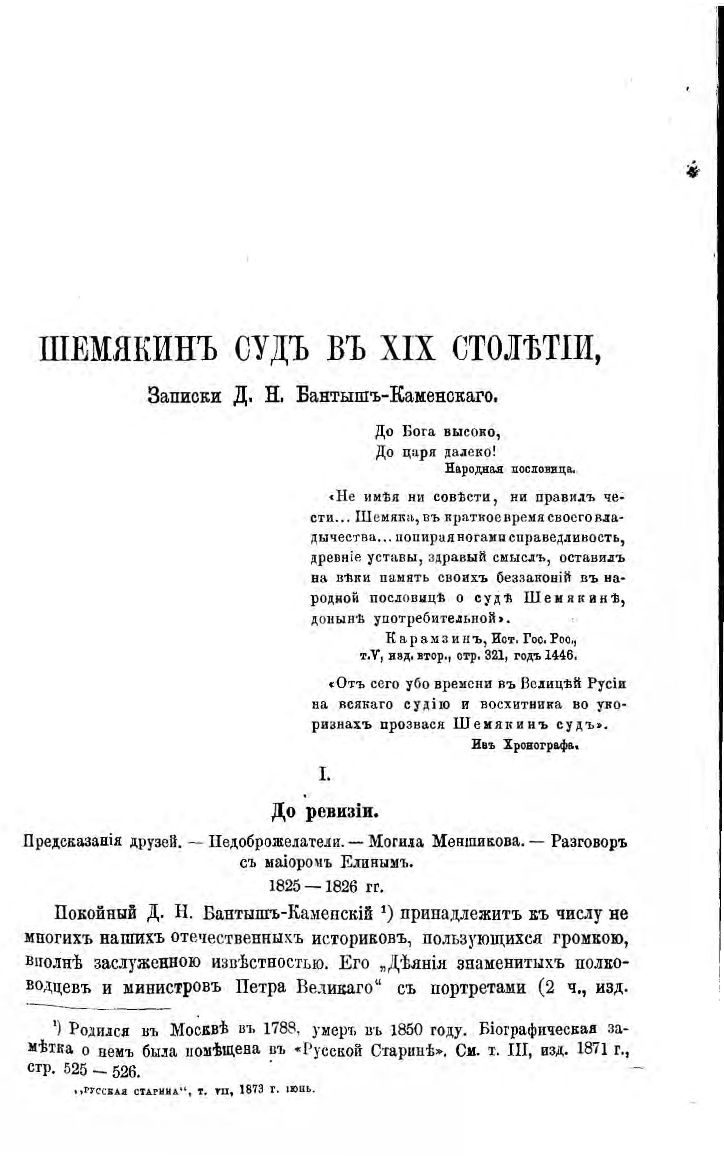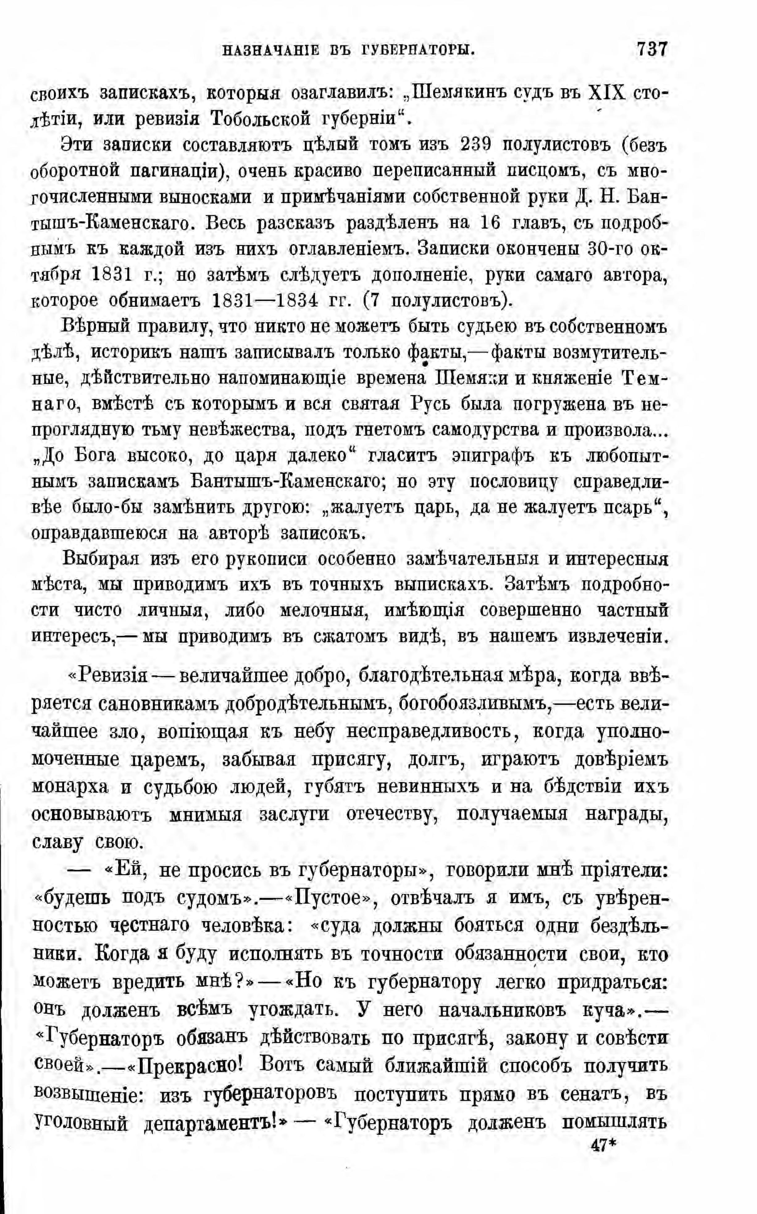 Шемякин суд в XIX столетии, или ревизия Тобольской губернии. Записки Д.Н. Бантыш-Каменского. Извлечения