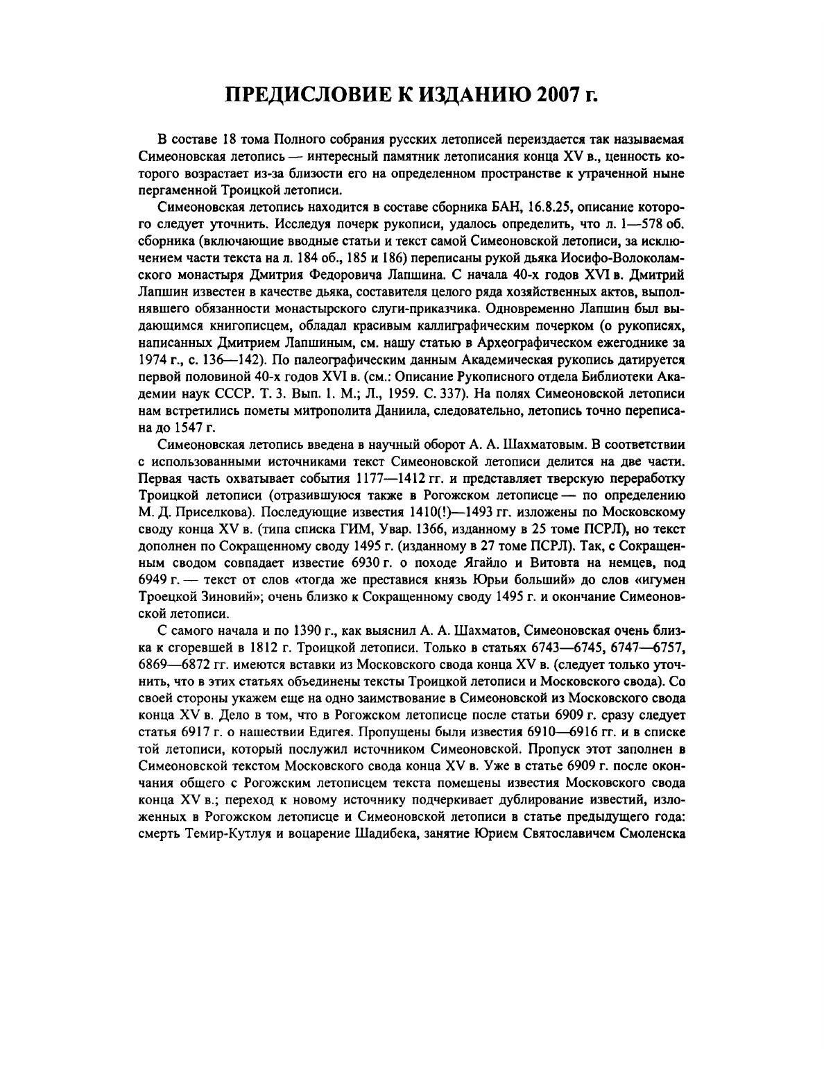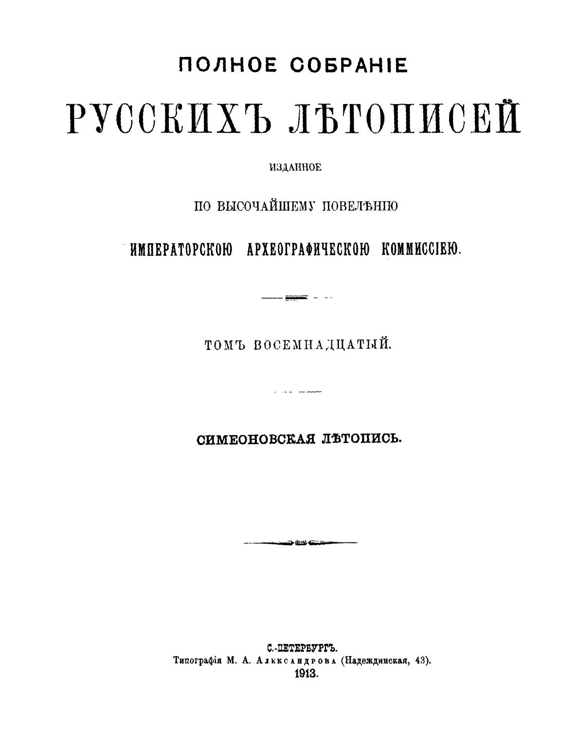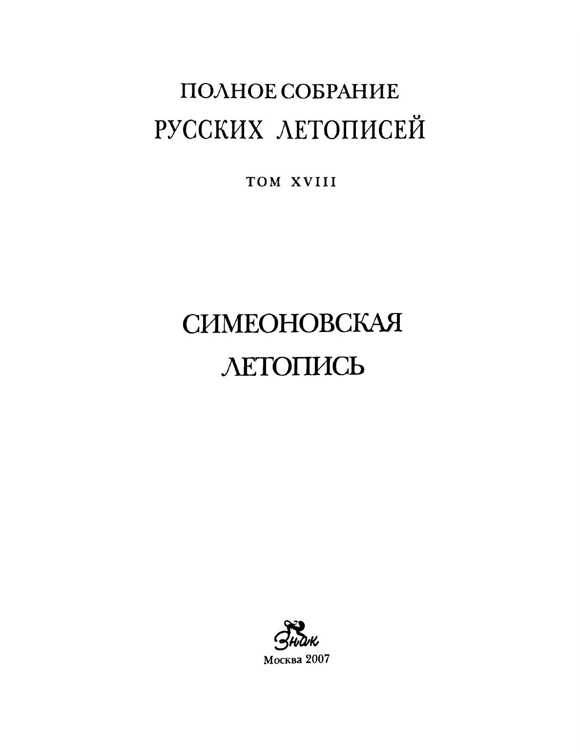 Симеоновская летопись (Полное собрание русских летописей. Т. XVIII)