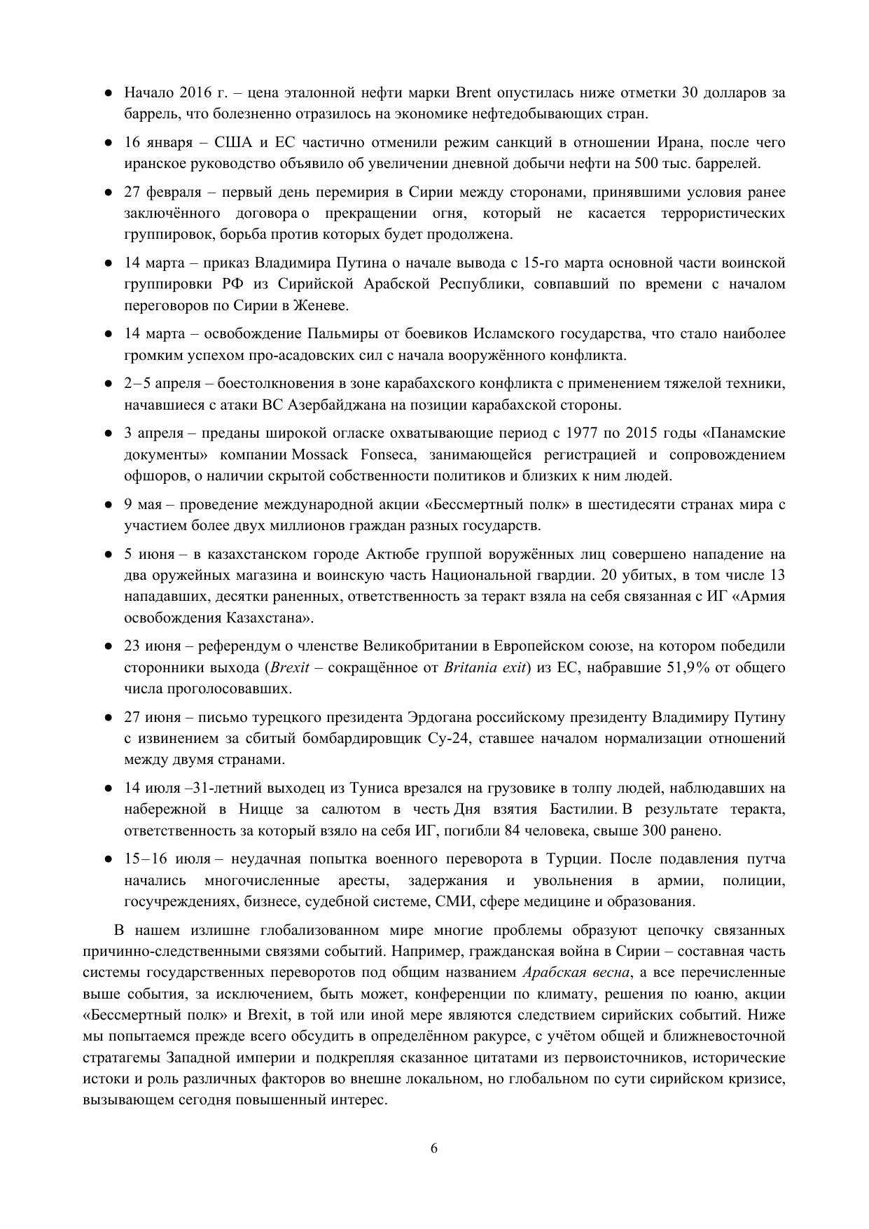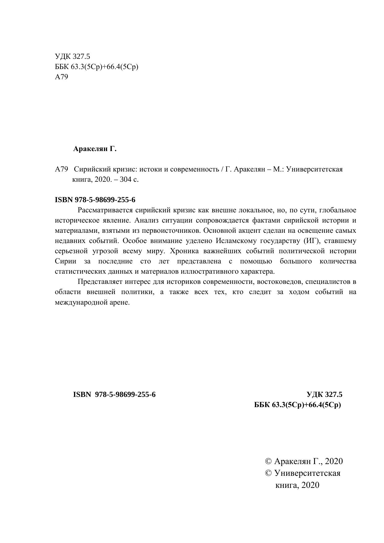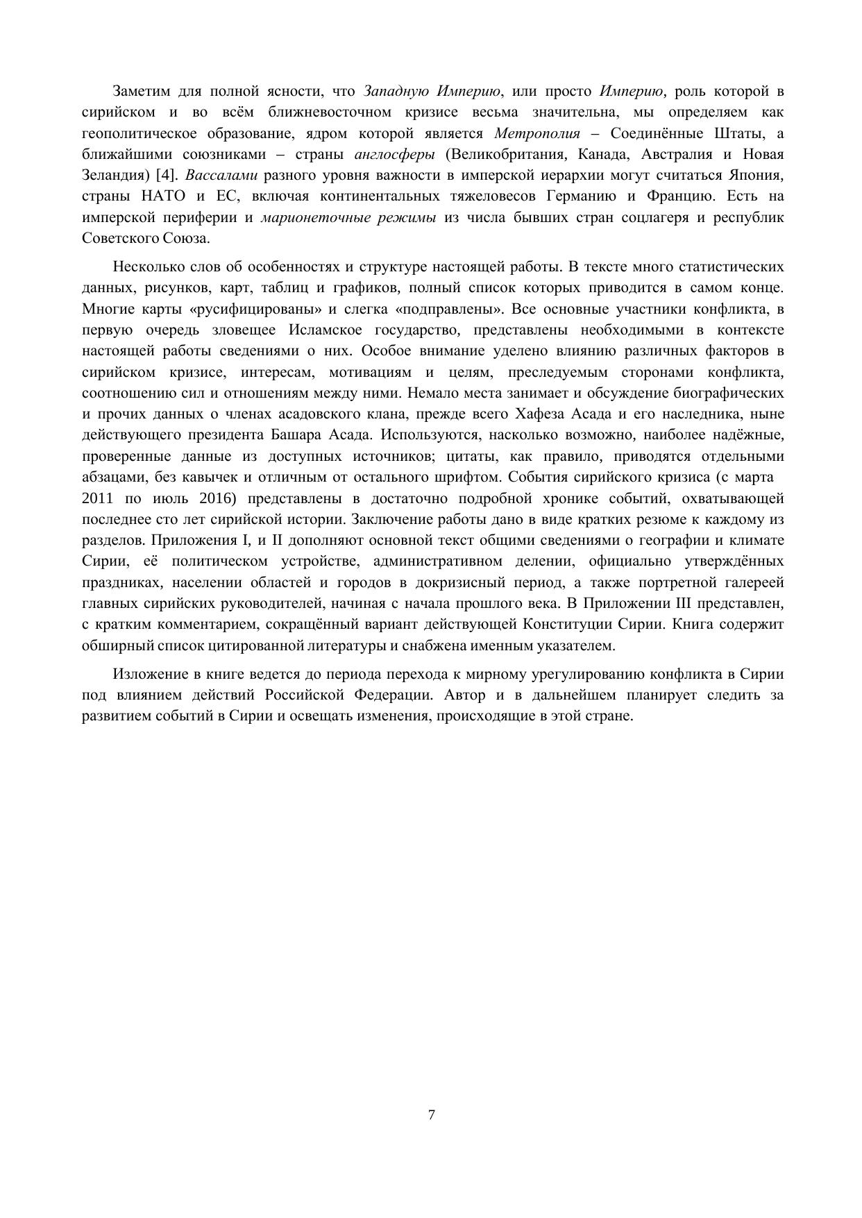 Рассматривается сирийский кризис как внешне локальное, но, по сути, глобальное историческое явление. Анализ ситуации сопровождается фактами сирийской истории и материалами, взятыми из первоисточников. Основной акцент сделан на освещение самых недавних событий. Особое внимание уделено Исламскому государству (ИГ), ставшему серьезной угрозой всему миру. Хроника важнейших событий политической истории Сирии за последние сто лет представлена с помощью большого количества статистических данных и материалов иллюстративного характера. Представляет интерес для историков современности, востоковедов, специалистов в области внешней политики, а также всех тех, кто следит за ходом событий на международной арене.