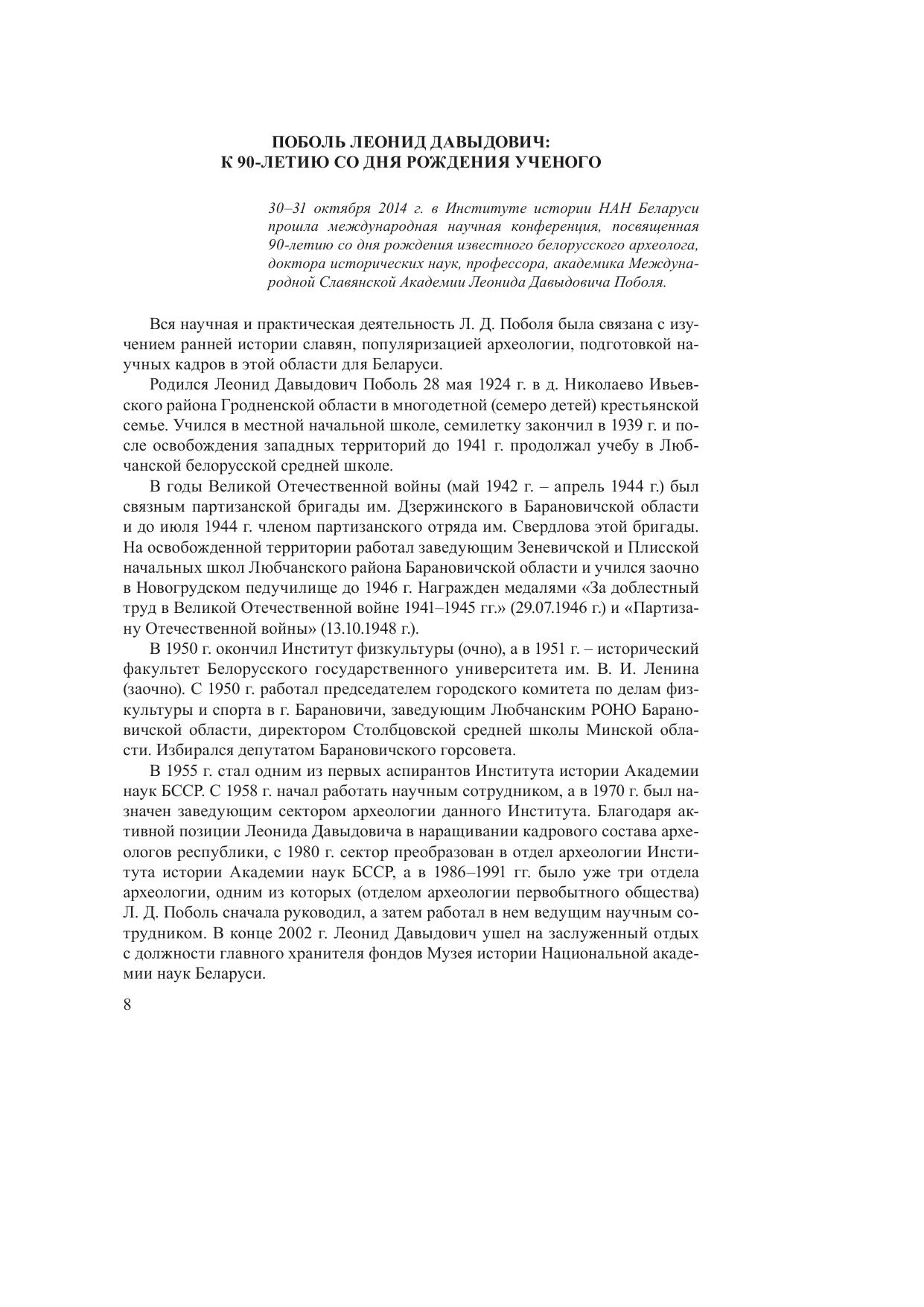 Славяне на территории Беларуси в догосударственный период: к 90-летию со дня рождения Леонида Давыдовича Поболя. В 2 кн. Кн. 1