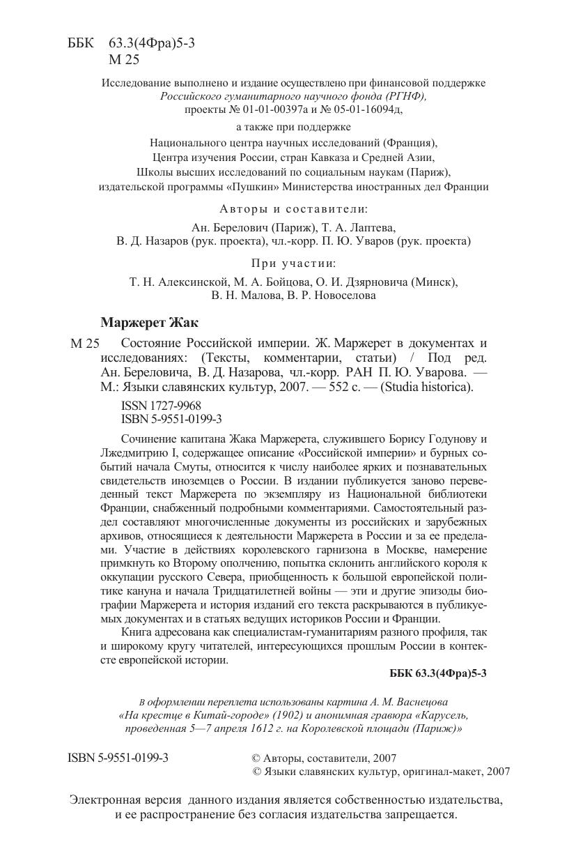 Авторы: Маржерет Ж.