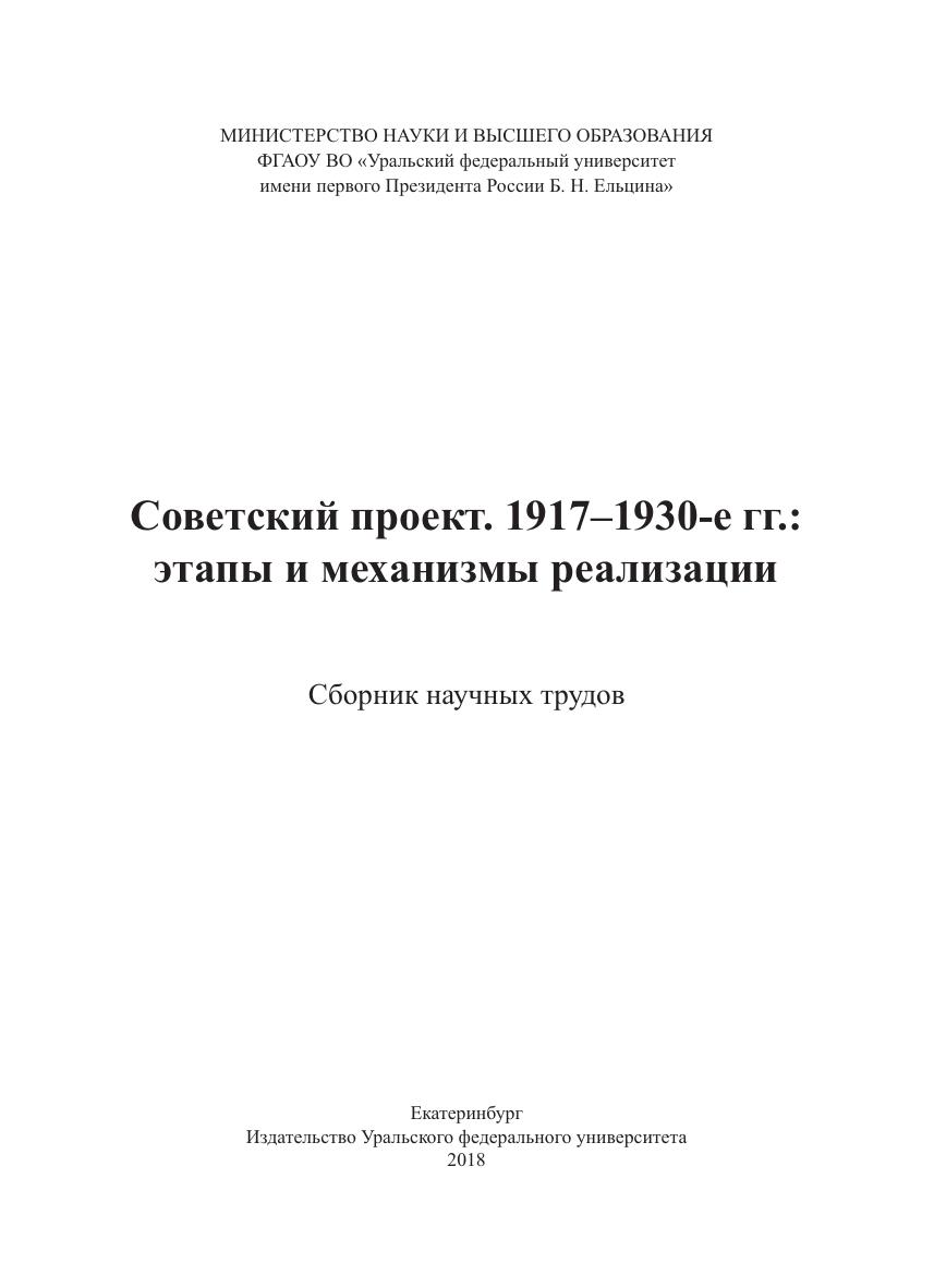 Советский проект. 1917–1930-е гг.: этапы и механизмы реализации