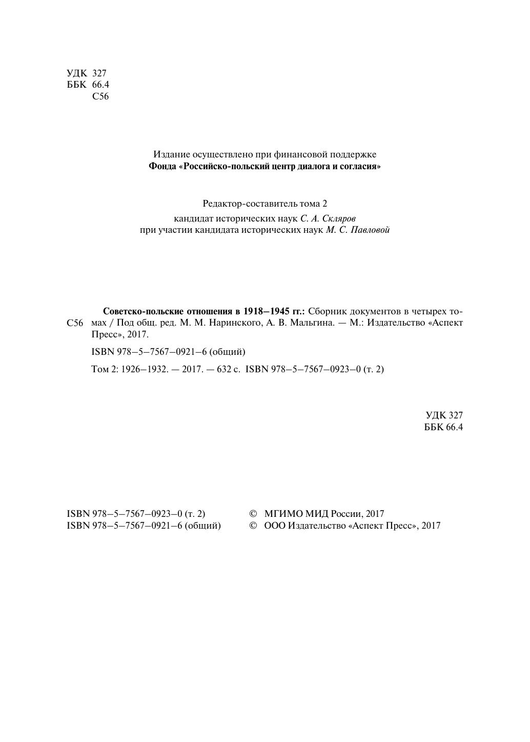 Советско-польские отношения в 1918–1945 гг. Сборник документов в четырех томах. Том 2. 1926–1932