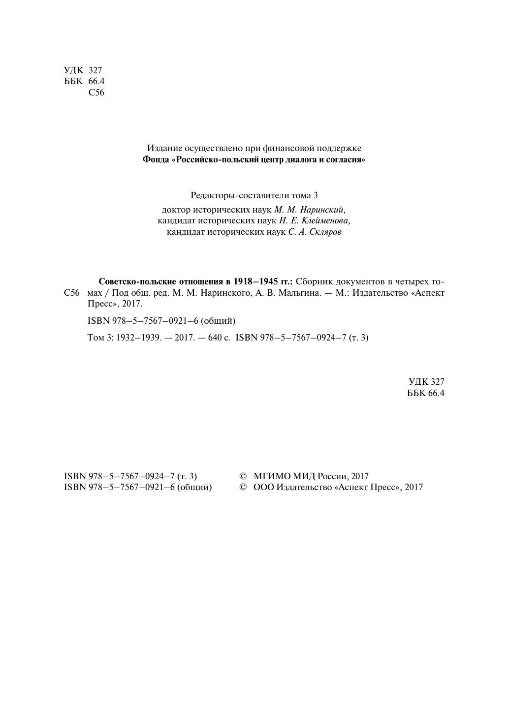 Советско-польские отношения в 1918–1945 гг. Сборник документов в четырех томах. Том 3. 1932–193