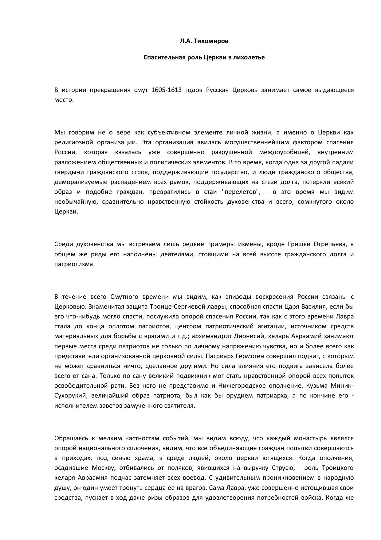Спасительная роль Церкви в лихолетье