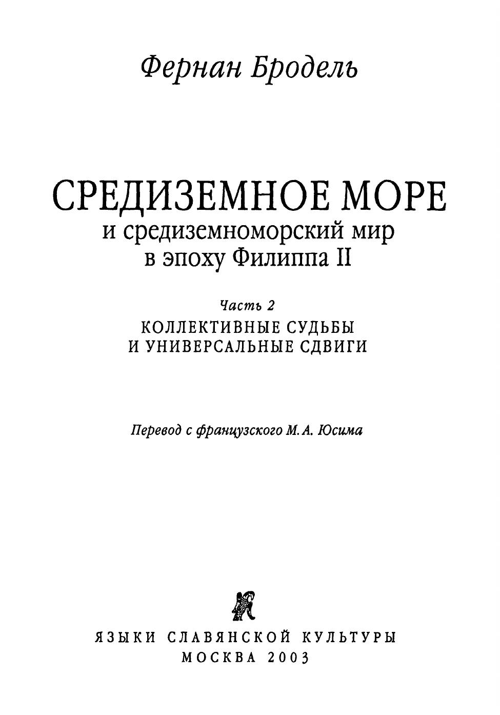 Средиземное море и средизем. мир в эпоху Филиппа II. Ч. 2