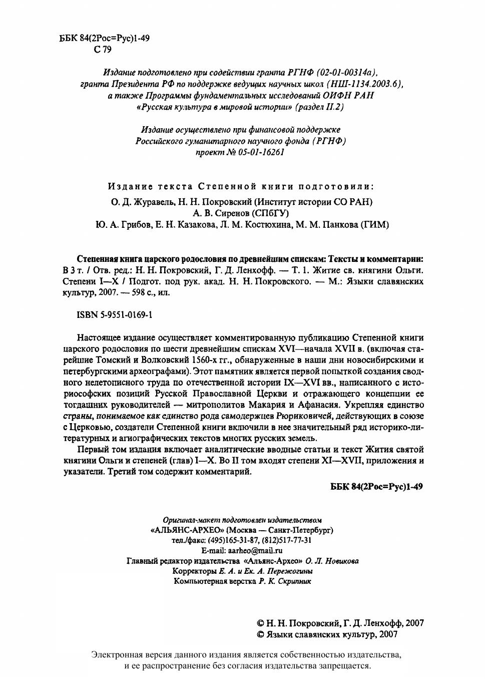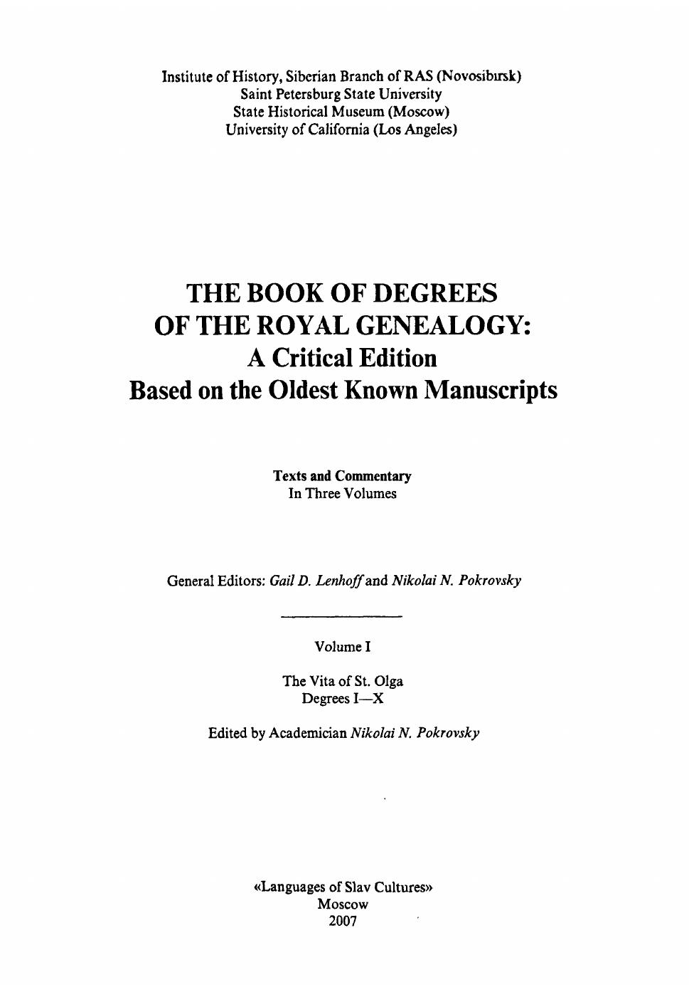 Степенная книга царского родословия по древнейшим спискам. Тексты и комментарии. Т. 1. Житие св. княгини Ольги. Степени I-X